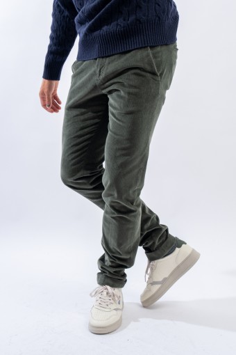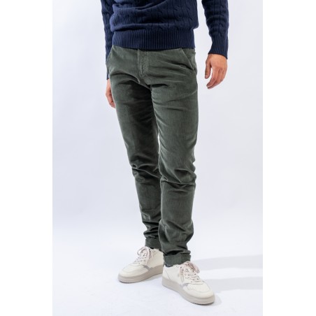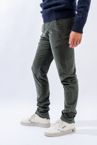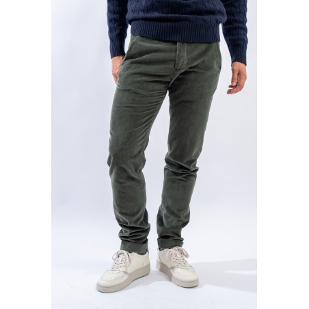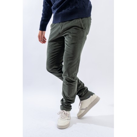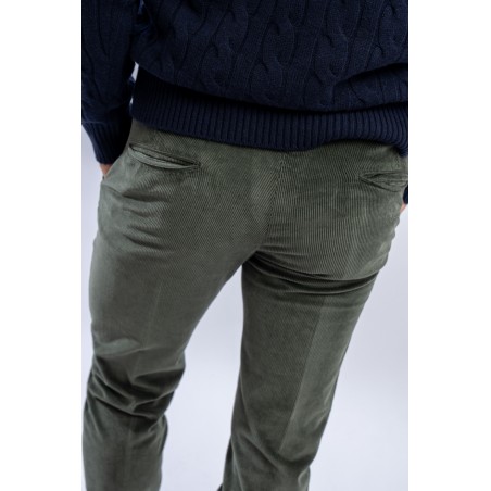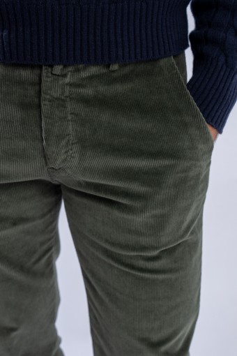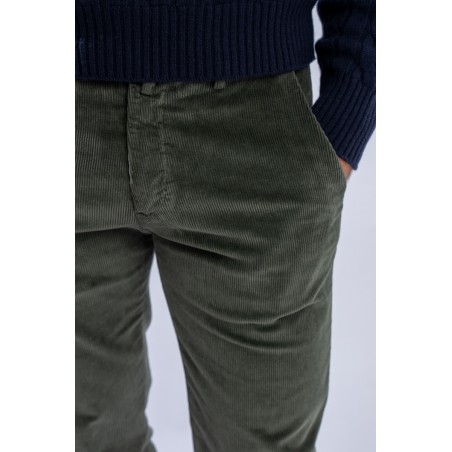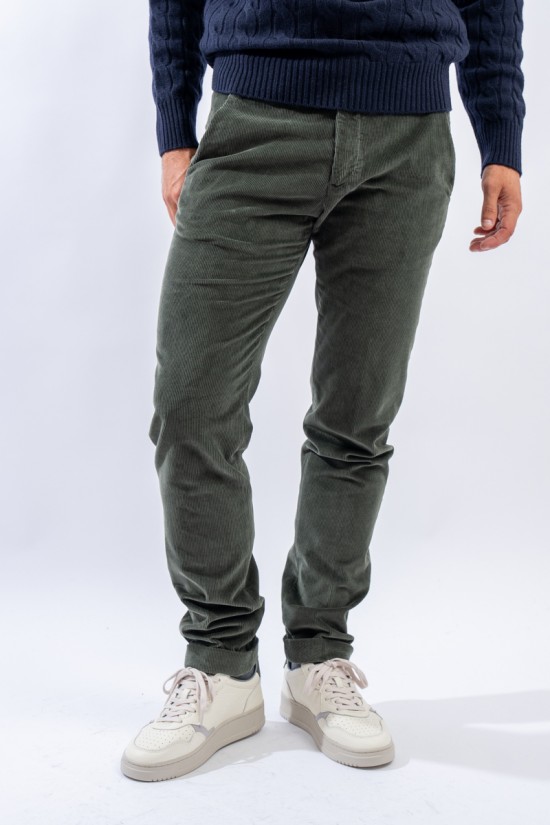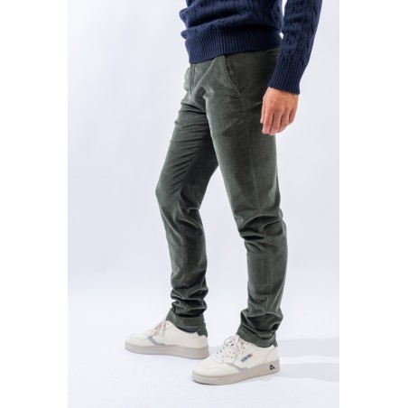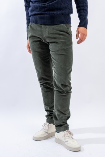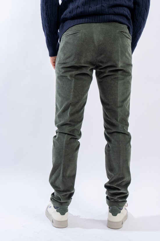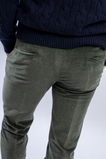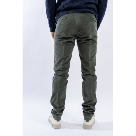 Design classico e tasca all'americana. Pantalone realizzato in misto cotone e modal caratterizzato da una lavorazione a costine fini effetto velluto. Morbido e confortevole è caldo e leggero. Completano il look il risvolto sul fondo che rendono il pantalone contemporaneo e versatile. Eleganza quotidiana firmata Briglia, Made in Italy.