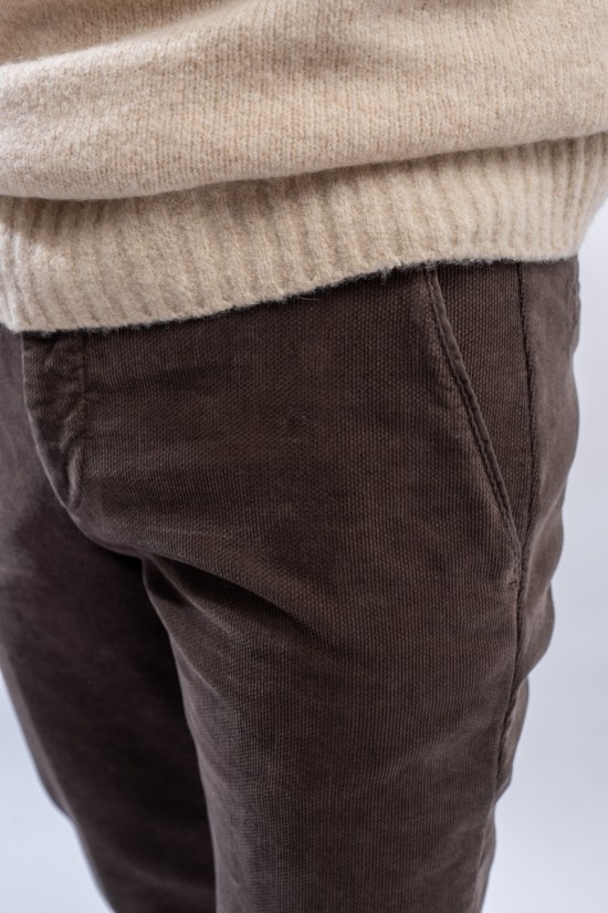 Design classico e tasca all'americana. Pantalone realizzato in cotone caratterizzato da una lavorazione a nido d'ape effetto velluto. Morbido e confortevole è caldo e leggero. Contraddistinto da un'eleganza quotidiana e dalla cura nei dettagli propria del Made in Italy firmato Briglia.