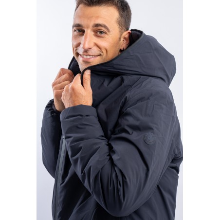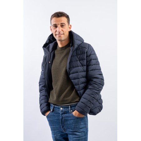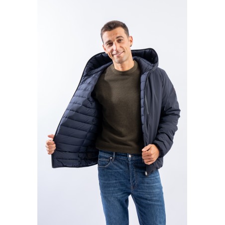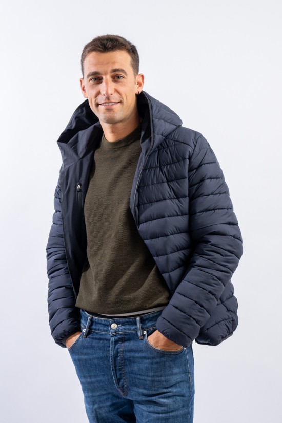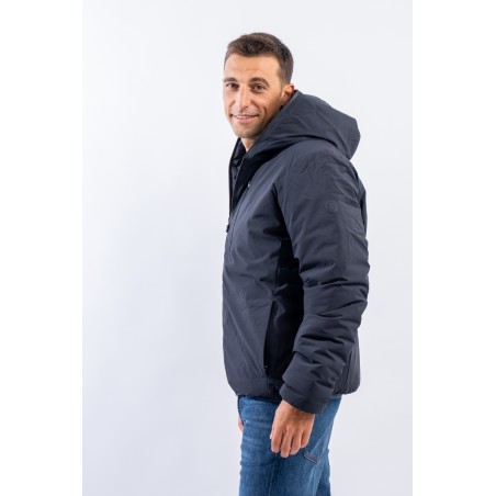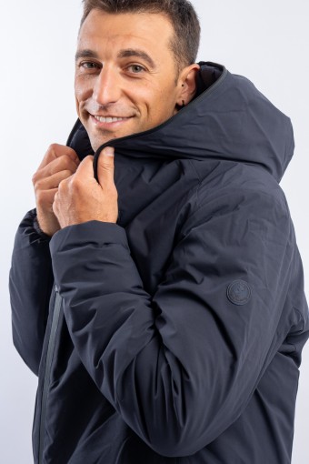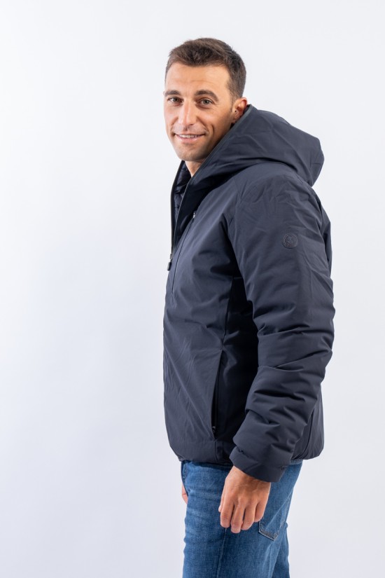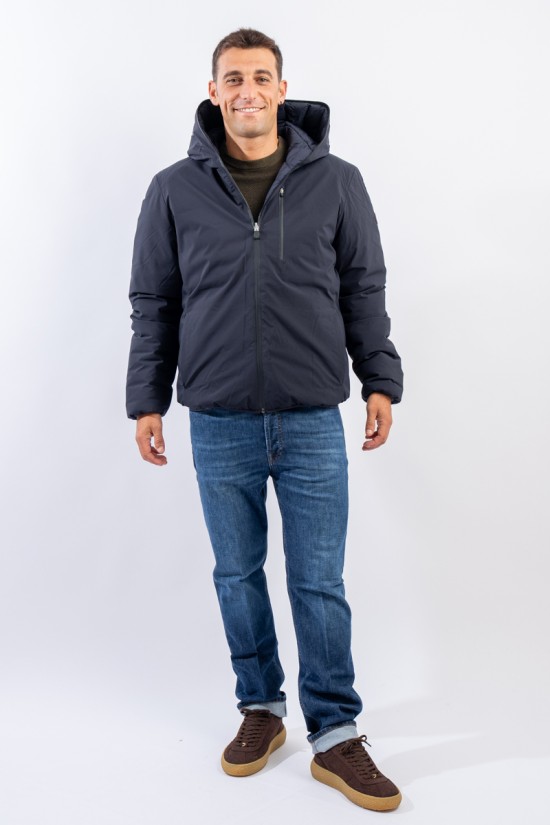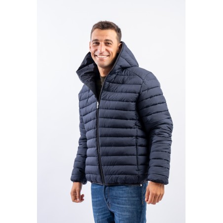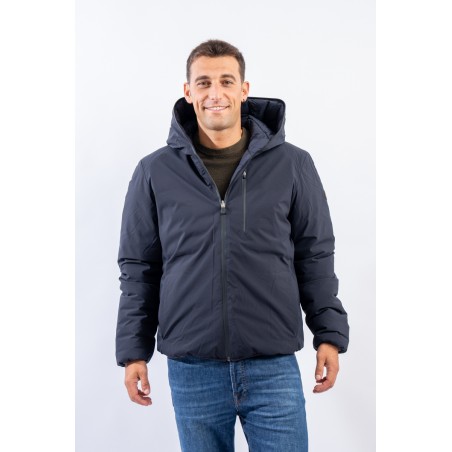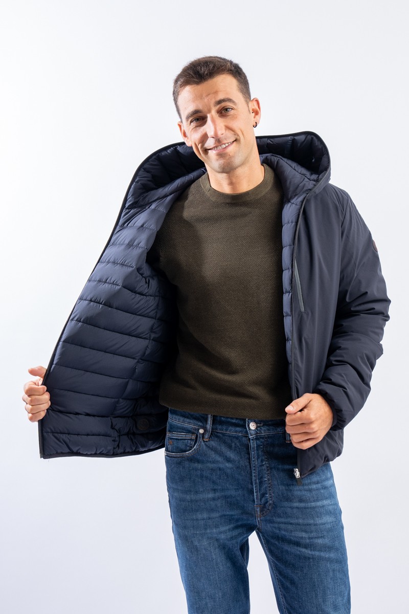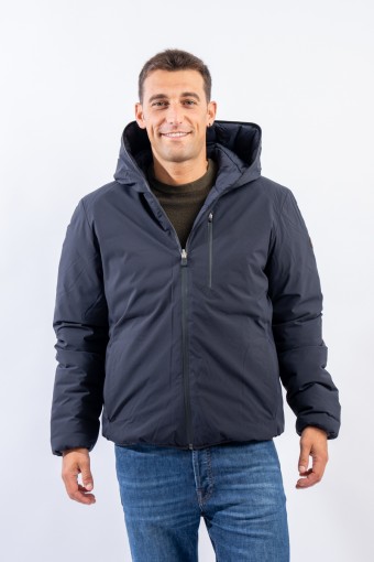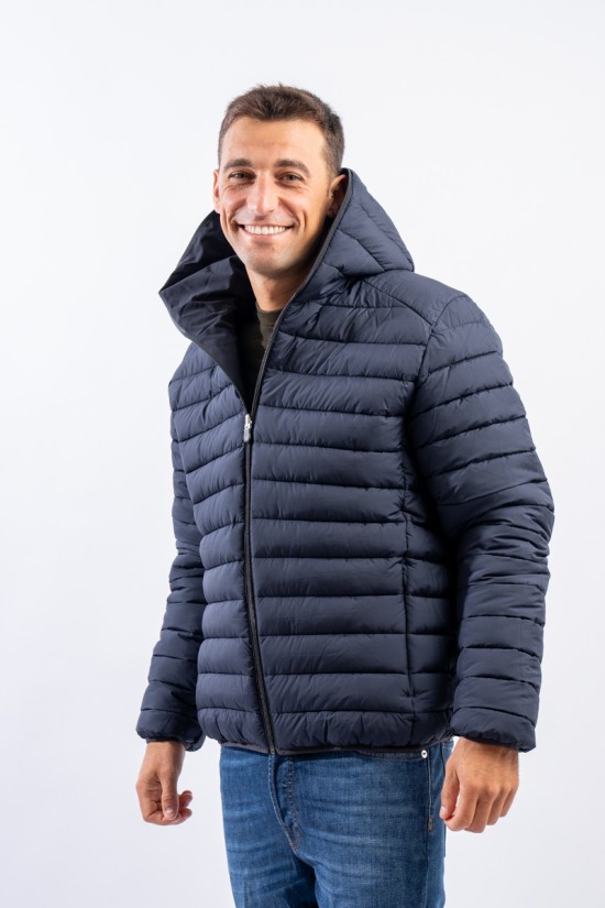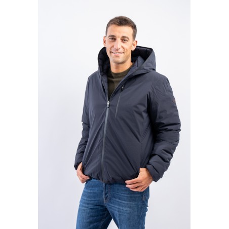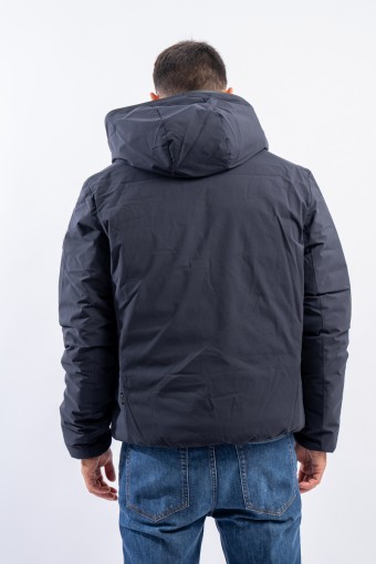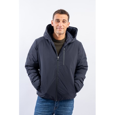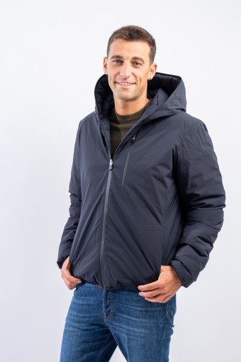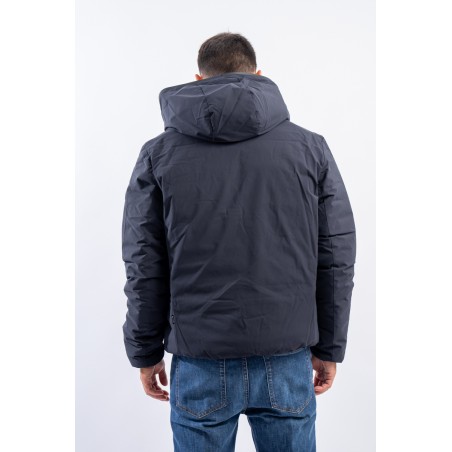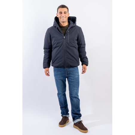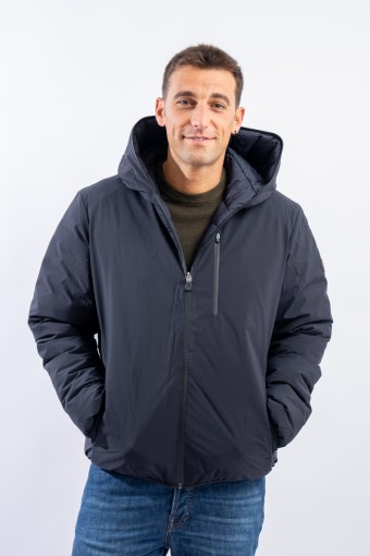 Giubbotto animal free, reversibile e compatto. Due look in uno. Da un lato un tessuto liscio ed opaco asseconda la linea pulita del capo, arricchita dalla full zip centrale e dal taschino ricavato sul petto. L'altro lato, un look più sportivo è caratterizzato da un classico boudine orizzontale rivestito da nylon opaco. Entrambi i lati presentano le due comode tasche laterali chiudibili con zip.