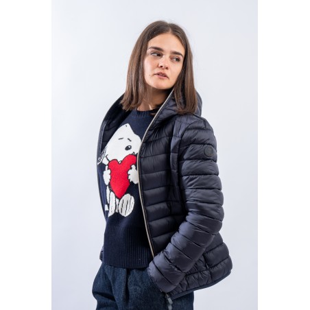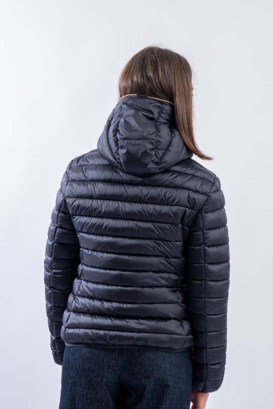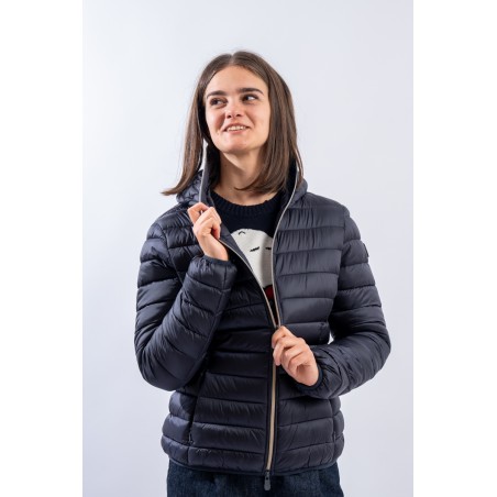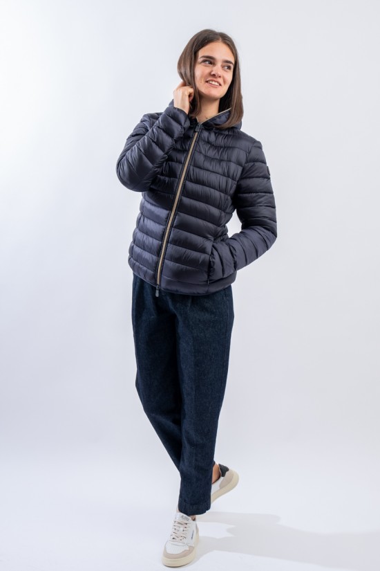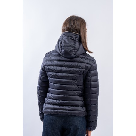 Eco piumino corto slim fit con cappuccio fisso. Il tessuto esterno semi lucido dona lucentezza ed esalta i colori. L'imbottitura in plumtech, piuma sintetica riciclata, è un'ottima alternativa al vero piumino e garantisce un perfetto isolamento termico. Sottile ma allo stesso tempo resistente, garantisce protezione dall'acqua e dall'aria. La chiusura centrale con zip dorata e doppio cursore. Il logo gommato tono su tono applicato sulla manica e doppie tasche laterali con chiusura a zip invisibili.