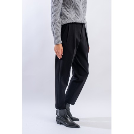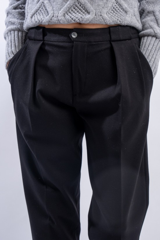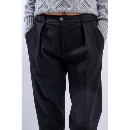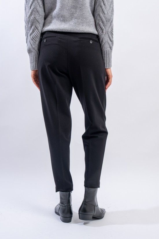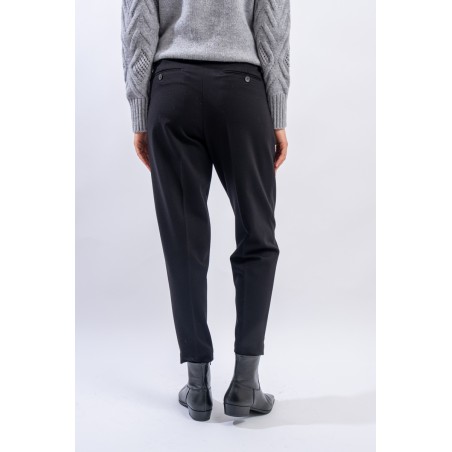 L'evoluzione del pantalone dal taglio elegante realizzato in jersey stretch dal comfort ottimale. Presenta punto vita elastico con passanti per la cintura, chiusura con bottone e zip. Dotato di pinces e tasche laterali. Gamba morbida e fondo più stretto. Pratico e versatile, dal look formale!