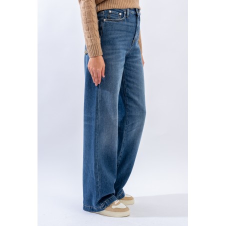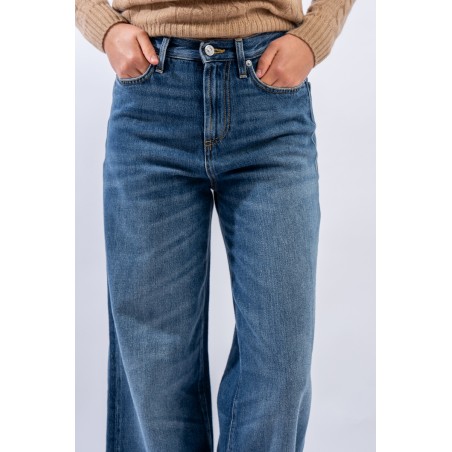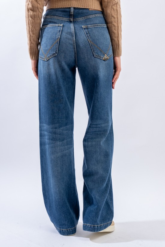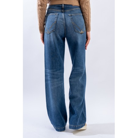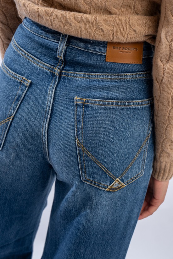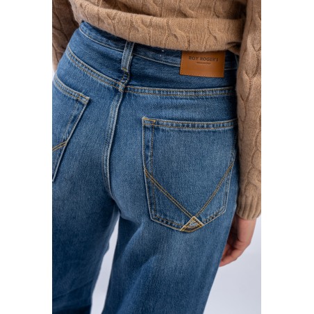Marta è in modello iconico e amatissimo di Roy Roger's. Presenta vita medio/alta e gamba a palazzo. Realizzato in denim particolarmente morbido al tatto grazie alla combinazione di cotone e lyocell. Lavaggio medio con cuciture a contrasto e label in pelle sulla tasca posteriore. Made in Italy.