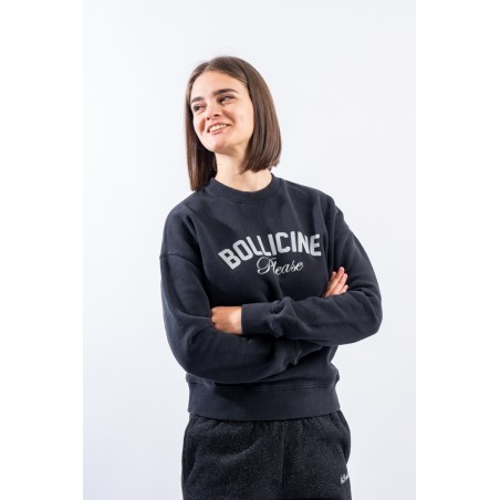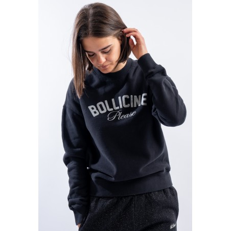 Felpa girocollo mid over impreziosita dalla stampa ironica in lurex "bollicine please". Interno spazzolato perfetto per le fredde giornate invernali, dall'aperitivo in città all'après ski in montagna!