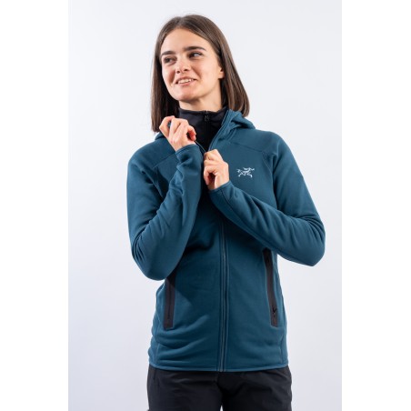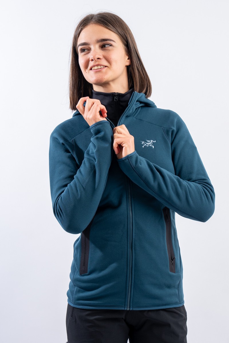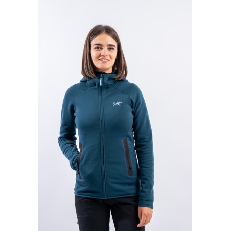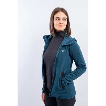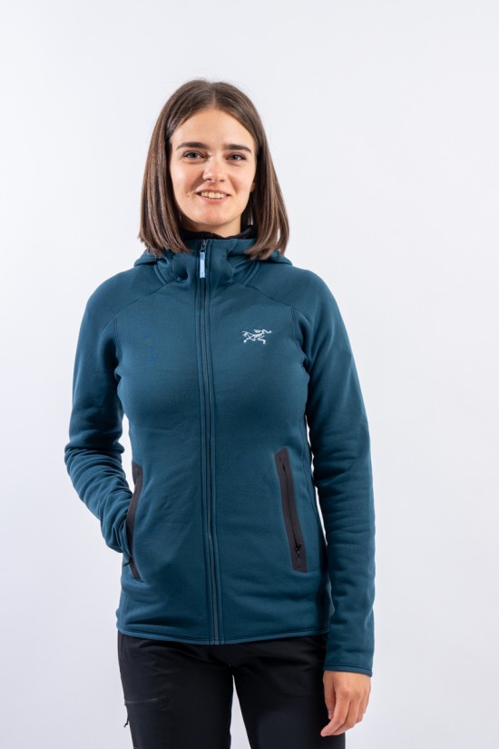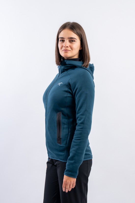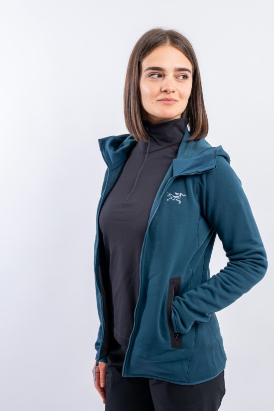KYANITE HOODY da donna estremamente confortevole grazie al materiale Polartec power stretch Pro. Termico e altamente traspirante. Ideale per le gite fuori porta in estate e per lo sci in inverno. Ridisegnato con un taglio più aerodinamico e con taschino interno. Taglio aggiornato. Molto pratico nel lavaggio e rapida asciugatura. GOOD DESIGN THAT MATTERS MAKES LIVES BETTER.