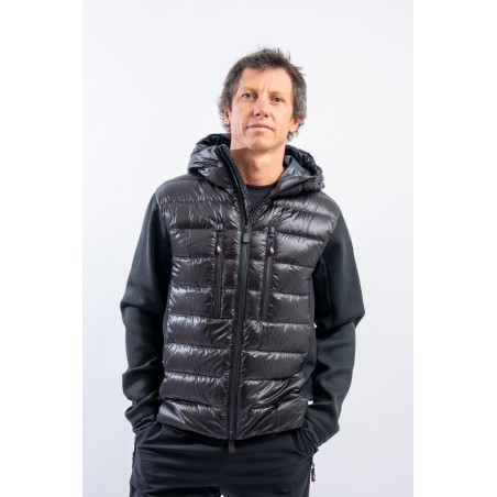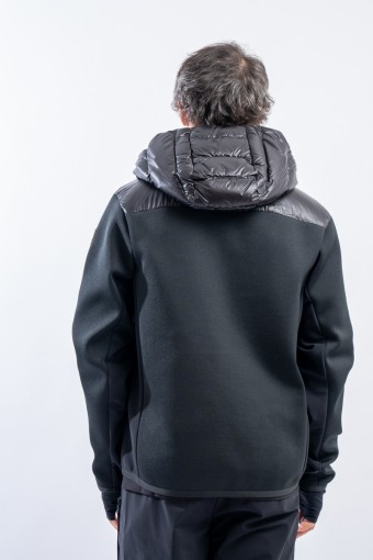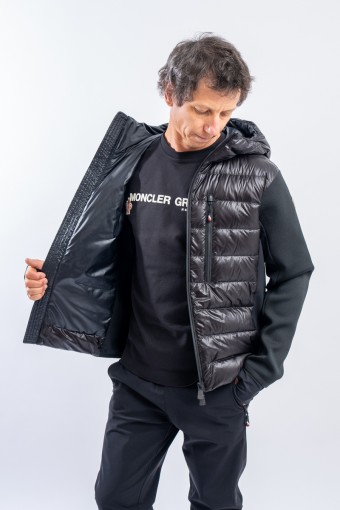 Il cardigan intermedio della collezione Après ski di Grenoble firmata Moncler è caratterizzato dall'utilizzo di più materiali funzionali. Il poliestere vanìs dona calore e traspirazione, scaldando nei punti più esposti come ad esempio i fianchi. Elasticizzato in 4 direzioni è confortevole e garantisce massima libertà di movimento. La parte anteriore è imbottitura in piumino e rivestita di nylon leggero semilucido arricchito dalla classica trapuntatura a boudine. Il cappuccio imbottito e il collo alto consentono una perfetta protezione nelle condizioni più avverse. Un layer realizzato per essere confortevole e versatile, pensato per affrontare ogni sfida in montagna.