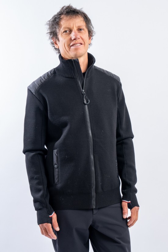 Calda maglia full zip realizzata in misto lana lavorata a maglia. Il look essenziale è contraddistinto dagli inserti sulle spalle imbottiti e riverstiti in nylon opaco. Le tasche laterali rifinite dalla patta in nylon e dal bottone logato tono su tono, sono un'ulteriore testimonianza della cura ai dettagli di Moncler. I polsini con inserto in jersey elastico, il collo alto e il fondo lavorati a costine, consentono una migliore aderenza al corpo permettendo una maggior protezione all'aria. Caldo e traspirante è lo strato aggiuntivo ideale nelle giornate più fredde.