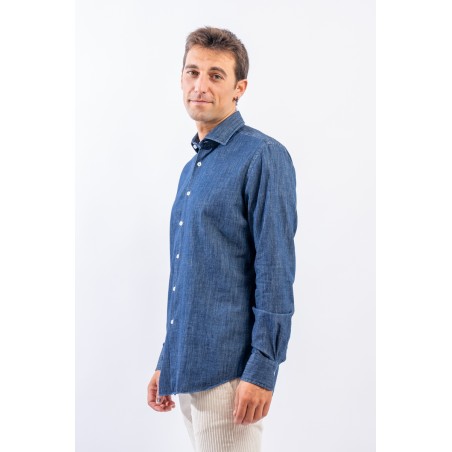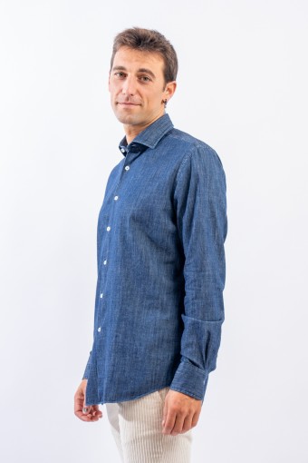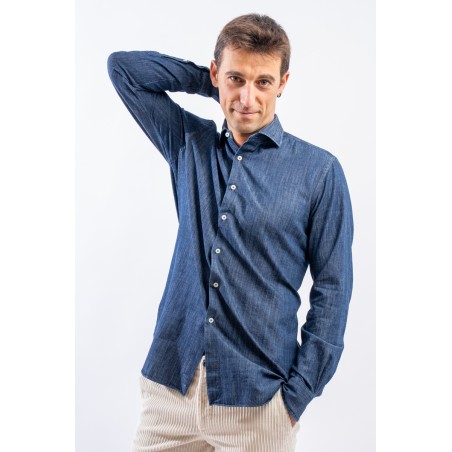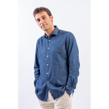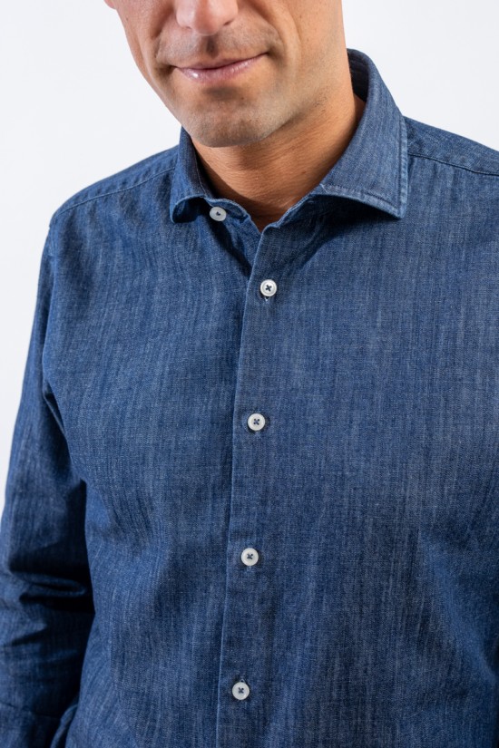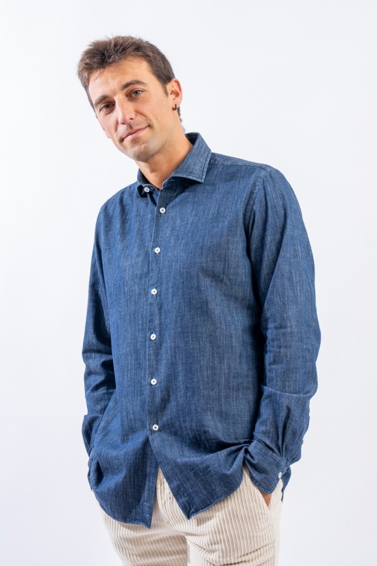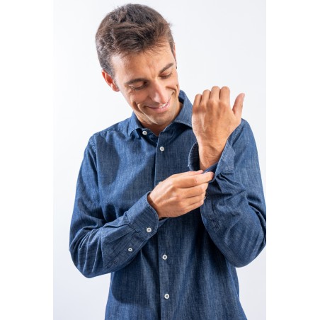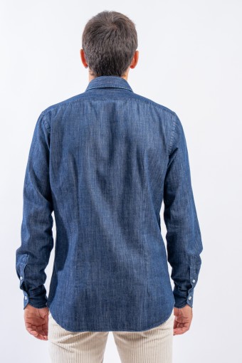 Camicia in denim realizzata con lavorazione "fil a fil, leggera e versatile. Il lavaggio in capo le permetterà di assumere un aspetto vissuto ed unico donando alla camicia un look sportivo e raffinato. Arricchita dalla chiusura con bottoni in madreperla è perfetta in ogni stagione e per ogni occasione.