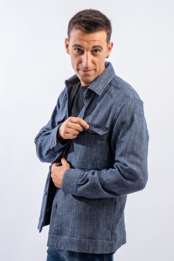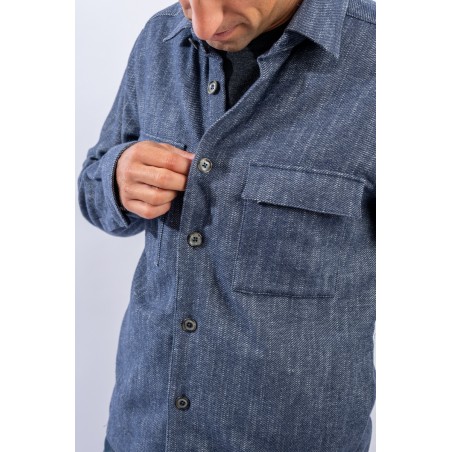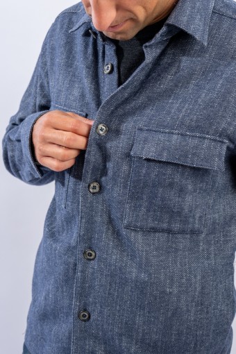 Giacca camicia realizzata in misto cotone e lana. Calda e morbida si contraddistingue per una lavorazione ad effetto sportivo e vissuto. Collo francese e classica abbottonatura centrale arricchita dall'applicazione di due tasche soffietto sul petto. Linee morbide e confortevoli per un look ammorbidito e casual. Vestibilità comoda per un capo versatile ideale nelle mezze stagioni come giacca o come caldo complemento in inverno.