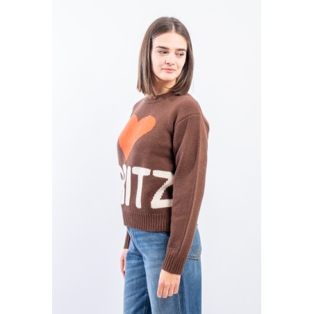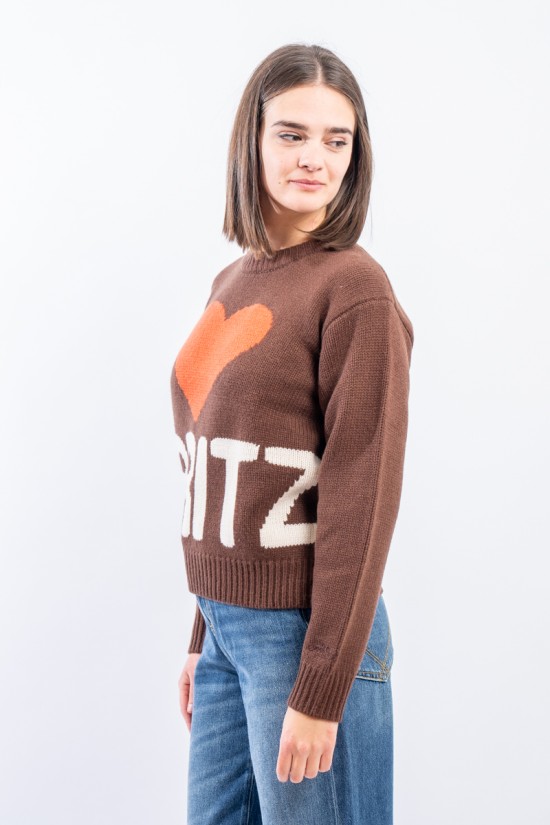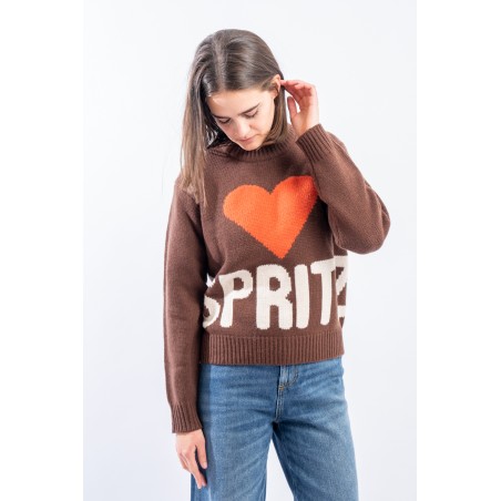 Maglione in lana lavorato a maglia dal taglio a scatoletta giovane e grintoso. Caratteristica distintiva è la maxi scritta jaquard "spritz" sul davanti perfetta per l'aperitivo in città o le vacanze in montagna. Girocollo, fondo e polsini lavorati a coste. Vestibilità regular.