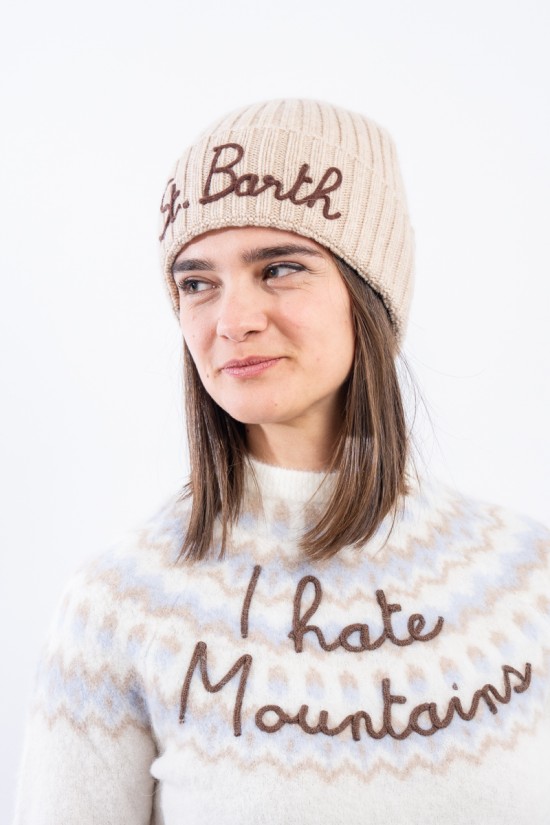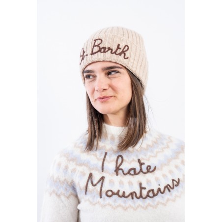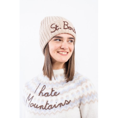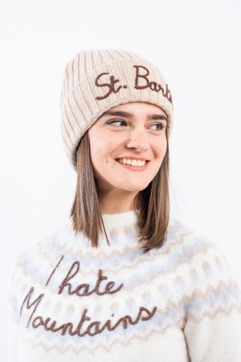 Berretto ralizzato in morbido e caldo tessuto misto lana con lavorazione a coste e risvolto. Design semplice arricchito dalla scritta embossed "St.Barth" a contrasto. Indispensabile accessorio per aggiungere un tocco glamour al tuo outfit!