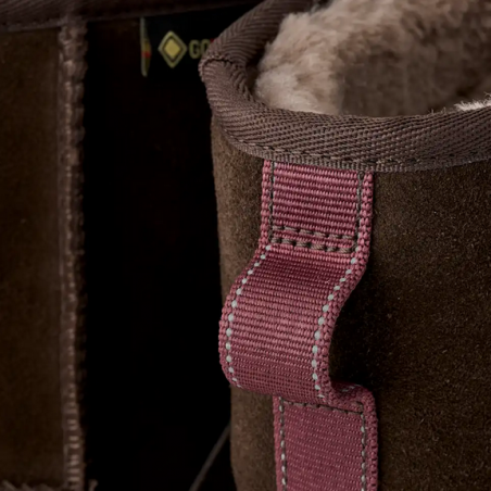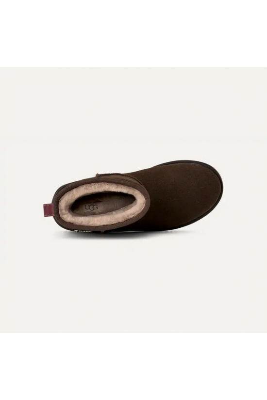 Il modello Classic Mini GTX non teme freddo, acqua e nessuna condizione atmosferica, per permetterti di non rinunciare mai ad un'uscita. Il camoscio è reso impermeabile grazie alla membrana in GORE-TEX, che isola il piede e lo protegge da pioggia e neve. La fodera e la soletta in UGGplush™ mantengono il piede caldo fino a temperature al di sotto dello 0. L'intersuola in EVA da canna da zucchero è leggera e confortevole. La suola esterna in Vibram® garantisce un ottimo grip al terreno.