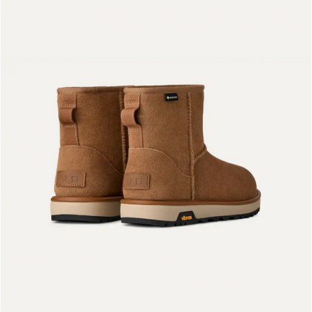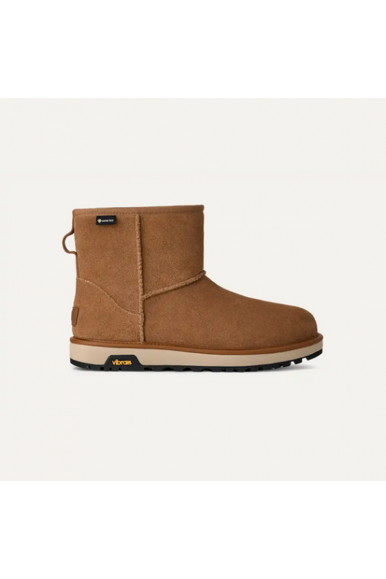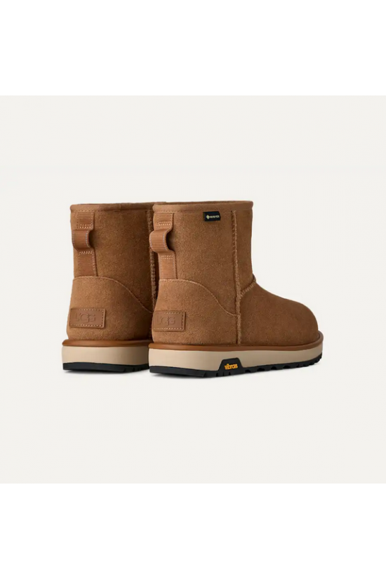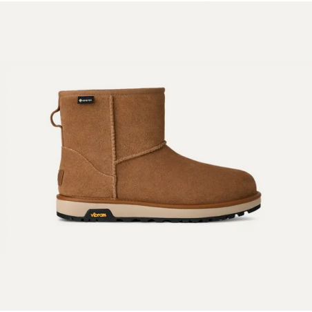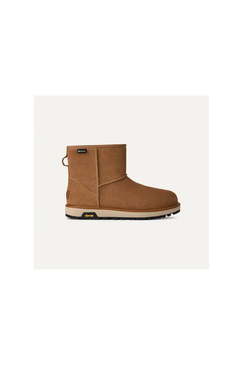 Il modello Classic Mini GTX non teme freddo, acqua e nessuna condizione atmosferica, per permetterti di non rinunciare mai ad un'uscita. Il camoscio è reso impermeabile grazie alla membrana in GORE-TEX, che isola il piede e lo protegge da pioggia e neve. La fodera e la soletta in UGGplush™ mantengono il piede caldo fino a temperature al di sotto dello 0. L'intersuola in EVA da canna da zucchero è leggera e confortevole. La suola esterna in Vibram® garantisce un ottimo grip al terreno.