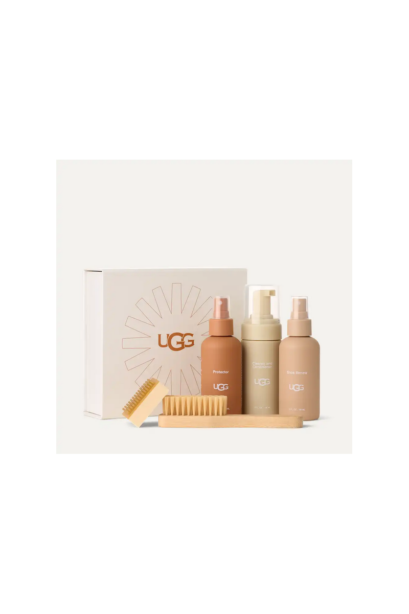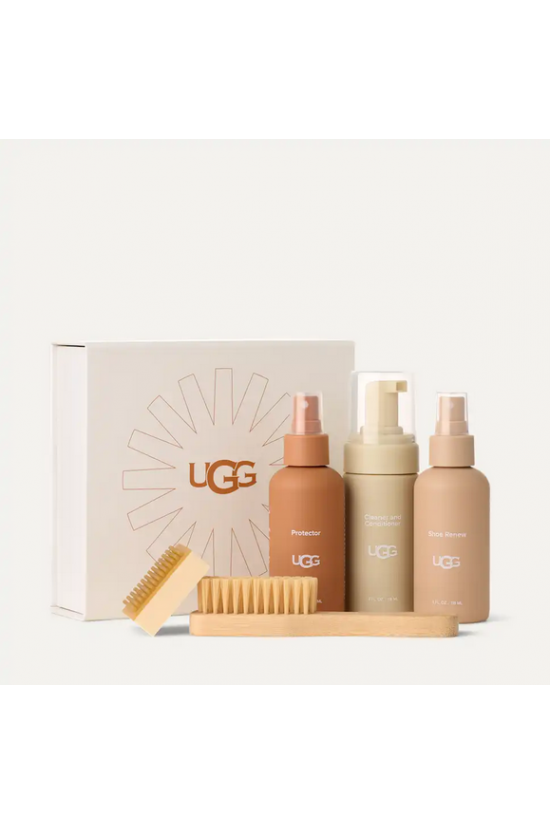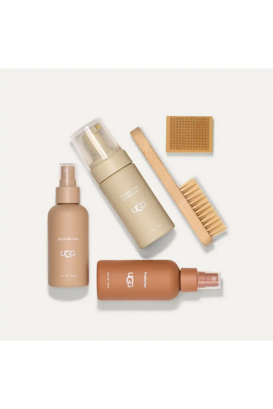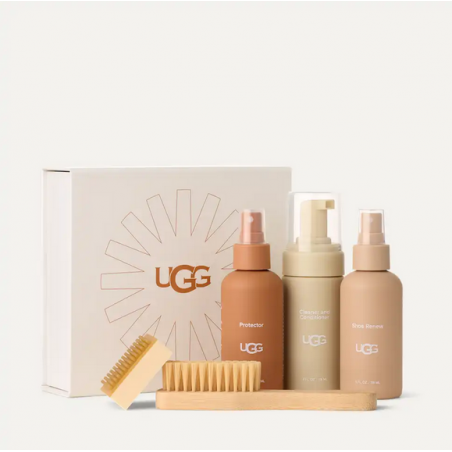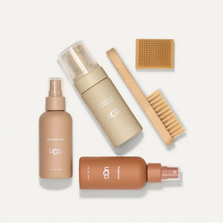 Il kit per la cura dei tuoi stivali, scarpe e ciabatte in montone UGG® è una soluzione completa per mantenere le tue calzature in ottime condizioni. Al suo interno troviamo: L'impermeabilizzante, essenziale per proteggere i tuoi montoni da acqua e macchie, Cleaner & Conditioner per la pulizia e il ripristino del montone. Shoe Renew è un prodotto specifico che contribuisce a ravvivare l’aspetto delle scarpe, spazzola con manico in bambù per una pulizia delicata e spazzola per cancellare le righe che elimina segni e graffi dalla pelle scamosciata.