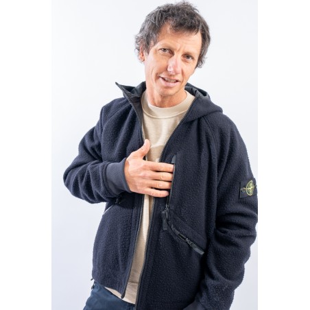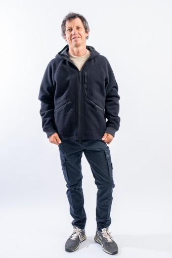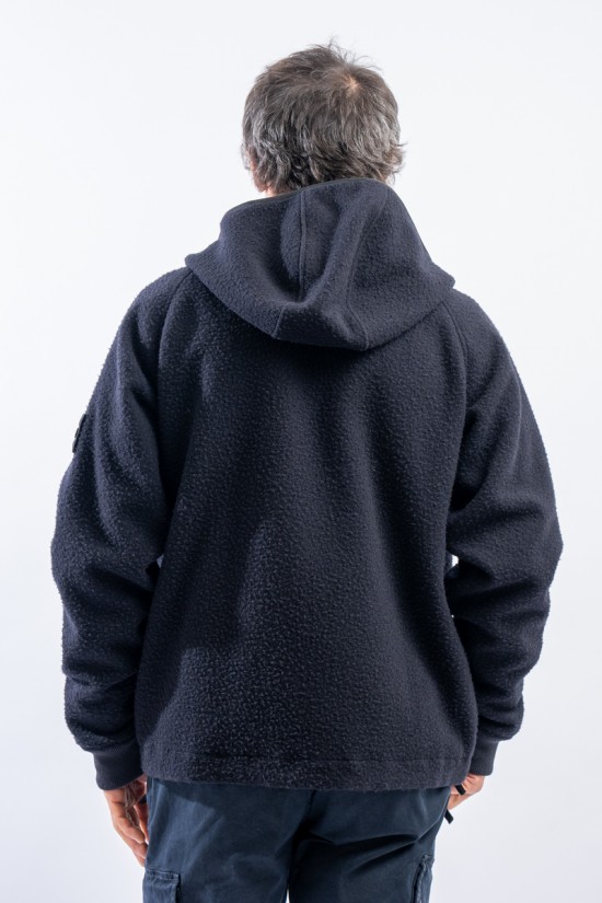 Giacca realizzata in panno di lana con fodera interna in nylon ripstop. Aspetto nodoso e vissuto dato dalla rifinitura con procedimento ratteen. Idrorepellente e calda, è trattata con uno speciale agente antigoccia. Completano il look due tasche oblique chiuse con zip sul davanti. Immancabile il badge istituzionale applicato sulla manica sinistra.