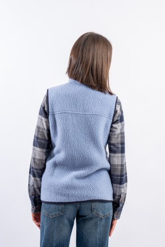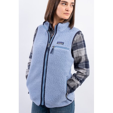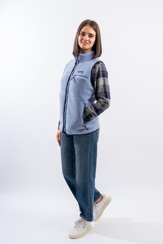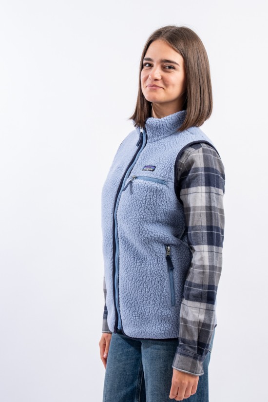 Gilet in pile ricciolo realizzato in morbidissimo poliestere riciclato secondo la filosofia di Patagonia. Tasca a filo sul petto e doppie tasche laterali con zip. Adatto per un utilizzo all'aria aperta, per lo sport e il tempo libero.