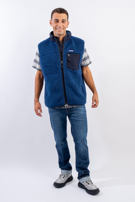 Iconico modello Patagonia rivisitato nei materiali, ancora più sostenibile! Il gilet Retro-X è realizzato in Repreve® 100% poliestere riciclato certificato da OceanCycle, effetto orsetto. Il modello mantiene il suo dna vintage. Il design più comodo dato dalla forma e dal materiale, è valorizzato dal collo, in pile effetto orsetto all'interno, per una piacevole sensazione al tatto. Due tasche laterali e una applicata al petto completano il look del modello.
