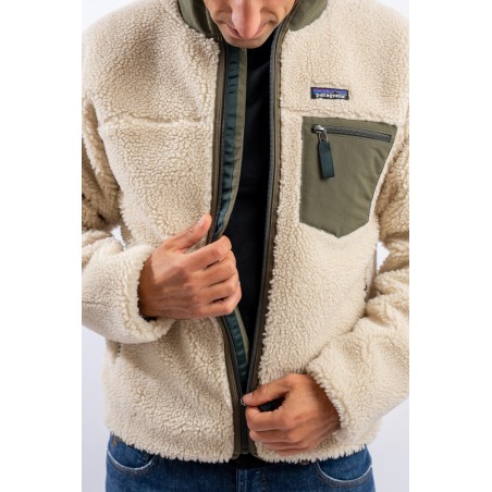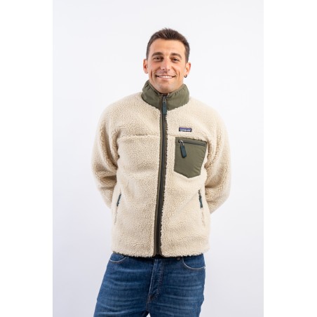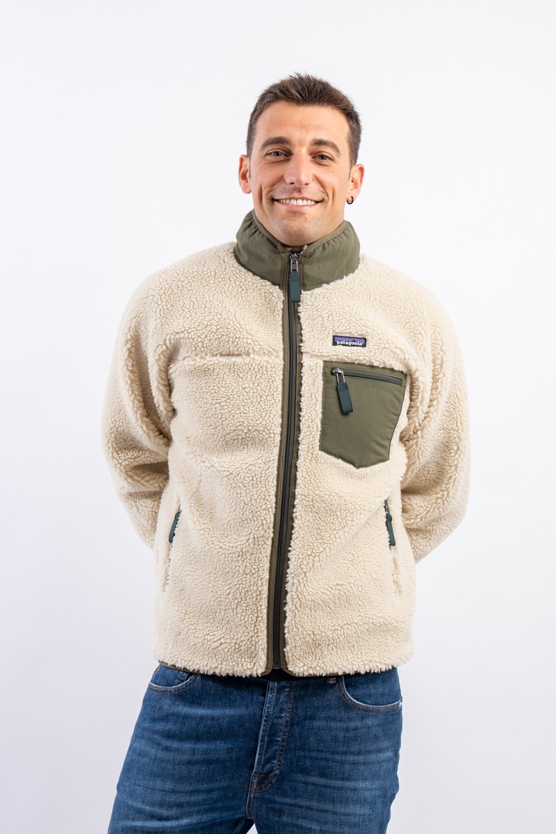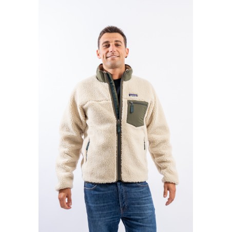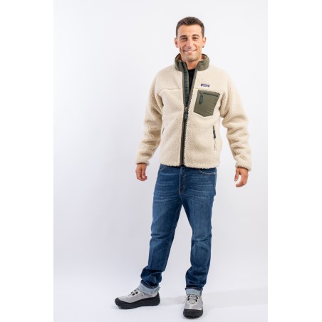 Iconico modello Patagonia rivisitato nei materiali, ancora più sostenibile! Retro-X è realizzato in Repreve® 100% poliestere riciclato certificato da OceanCycle, effetto orsetto. Il modello mantiene il suo dna vintage. Il design più comodo dato dalla forma e dal materiale, è valorizzato dal collo, in pile effetto orsetto all'interno, per una piacevole sensazione al tatto. Due tasche laterali e una applicata al petto completano il look del modello.