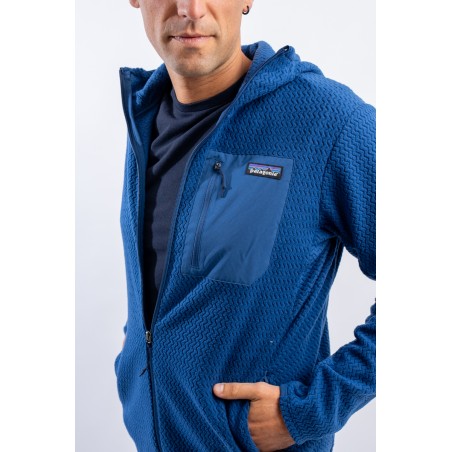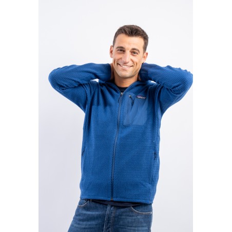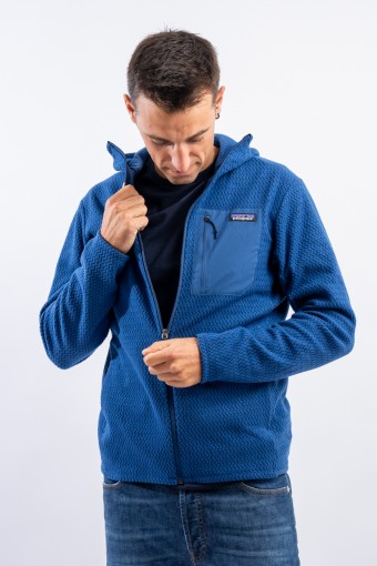 R1 è il pile tecnico di Patagonia leggero ed ultra traspirante. Il cappuccio consente maggior protezione nelle condizioni più estreme. Dotato di due tasche laterali, una al petto e dell'apertura full zip, è pratico e veloce da mettere e togliere. Confortevole e a rapida asciugatura è perfetto in inverno anche per svolgere le attività più intense.