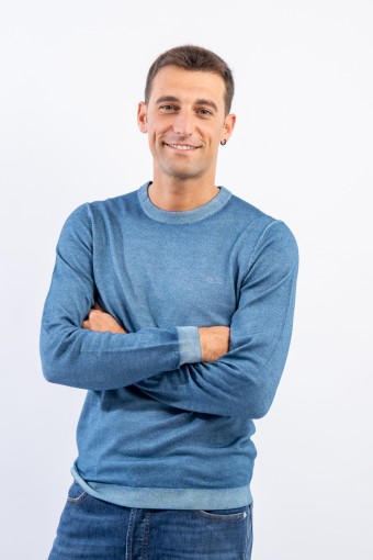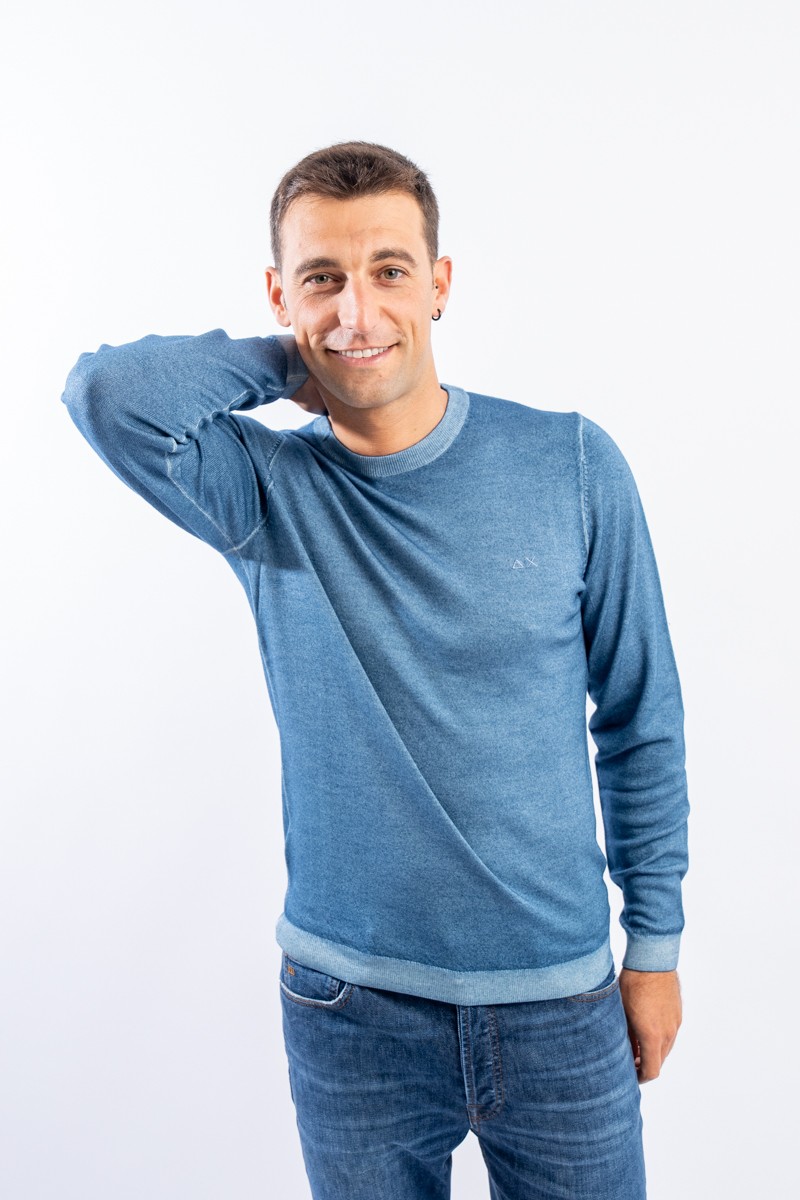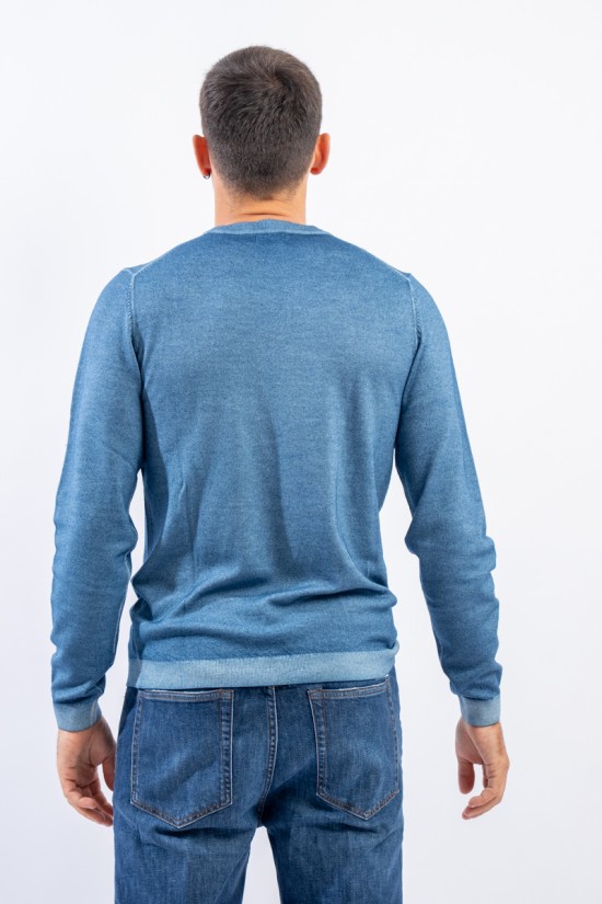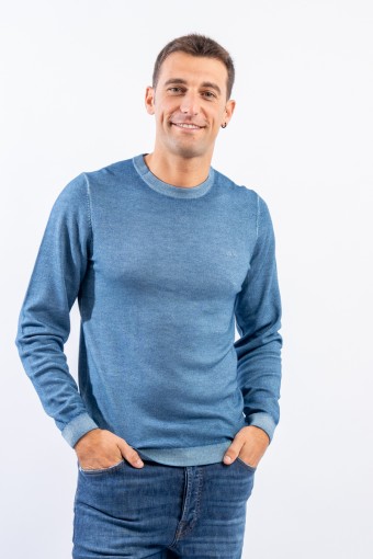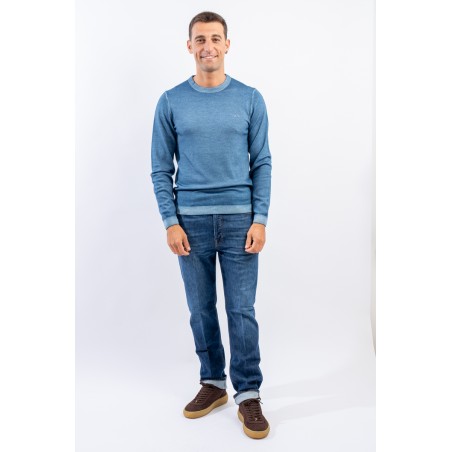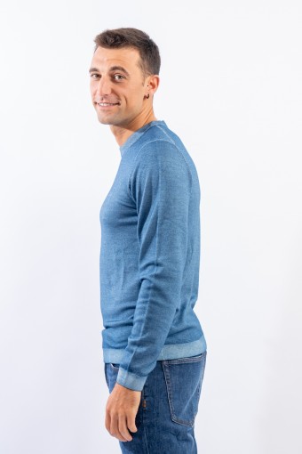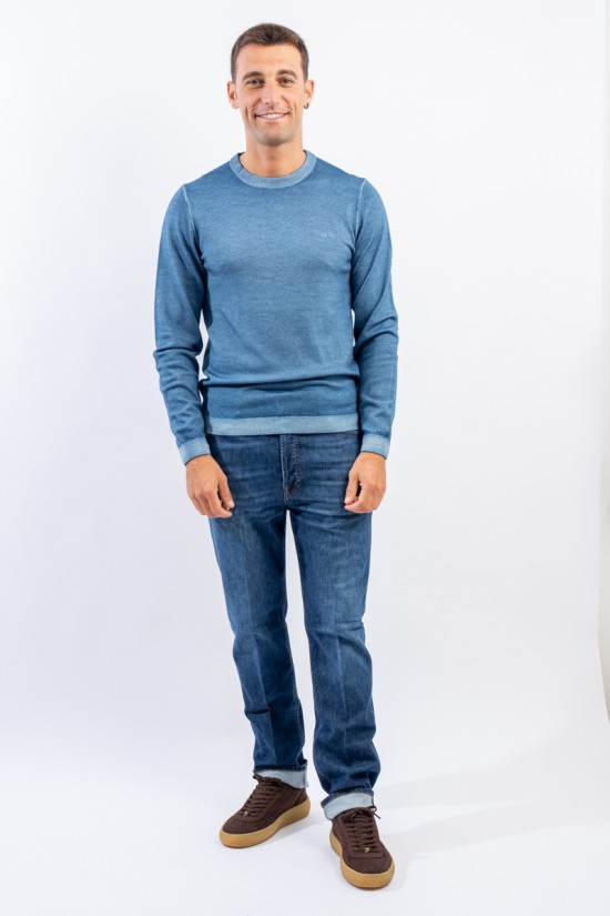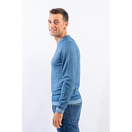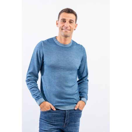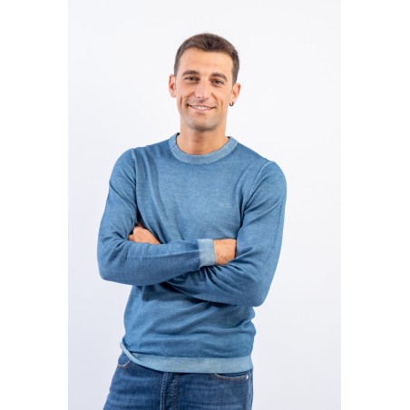 Maglia girocollo realizzata in lana merino caratterizzata da una lavorazione effetto vintage. I bordi a costine strette ed elasticizzate permettono un'aderenza ed una vestibilità ottimali.
