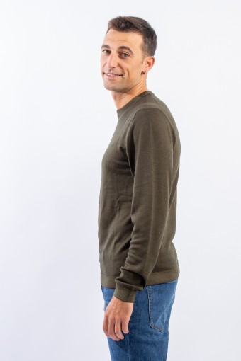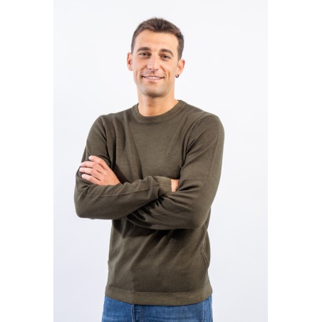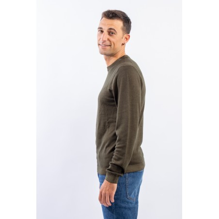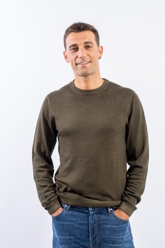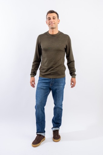Maglia girocollo realizzata in lana merino caratterizzata da una lavorazione effetto vintage. I bordi a costine strette ed elasticizzate permettono un'aderenza ed una vestibilità ottimali.