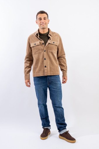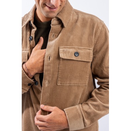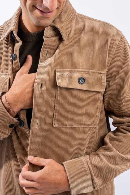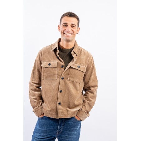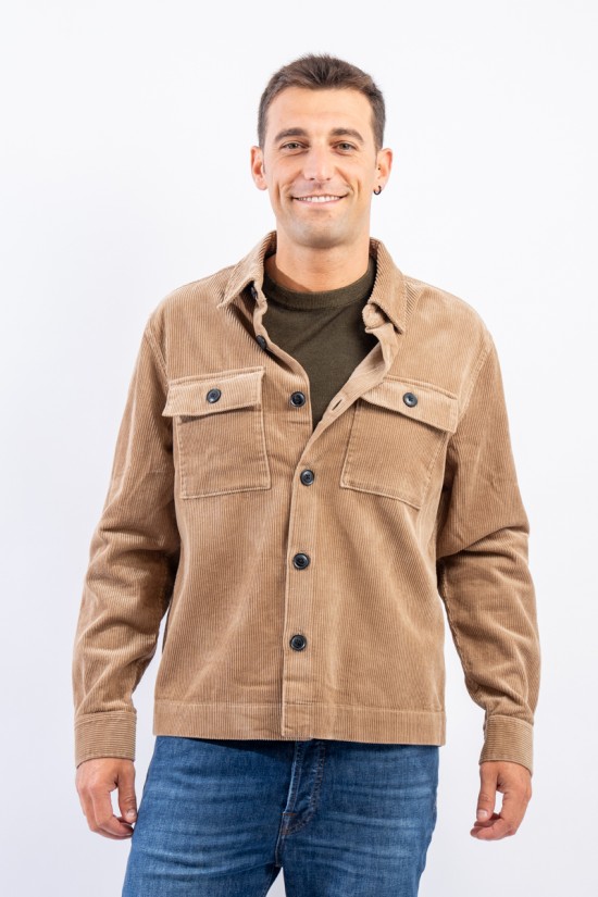 Giacca camicia realizzata in cotone 100%. Il classico design camicia è richiamato dal collo francese e dall'abbottonatura centrale. L'applicazione delle due tasche a soffietto al petto gli donano grinta e praticità. Calda e confortevole. Esternamente una lavorazione del materiale a costine conferisce un look street e casual ad un capo perfetto come caldo accessorio nelle giornate più fredde.