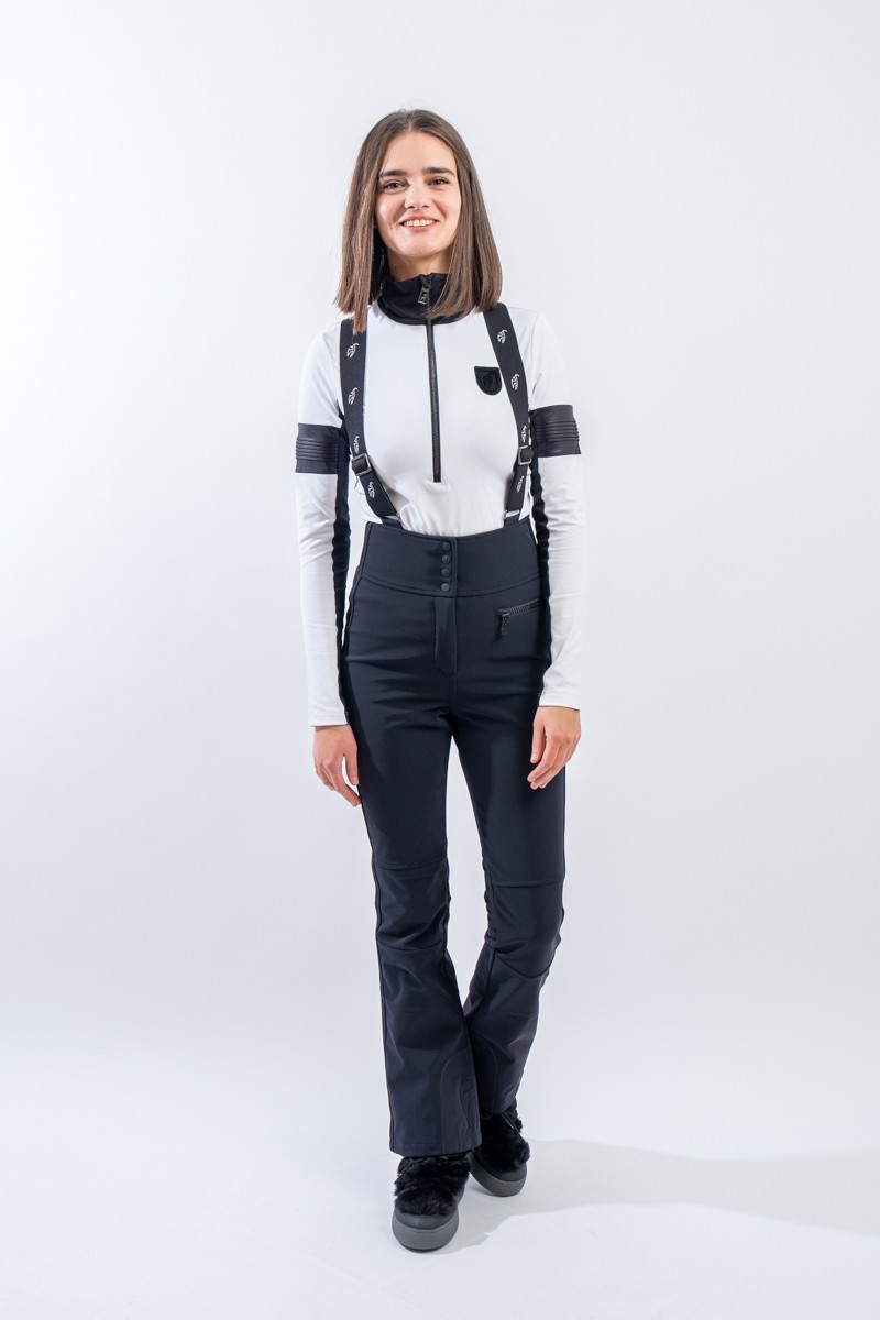 Pantalone sci completo di pettorina, Delfinaè realizzato in tessuto . Libertà di movimento e massimo comfort. Il tessuto e le bretelle in dotazione massimizzano la vestibilità e le cuciture 3D ridisegnano la figura valorizzandola. Altamente impermeabili e traspiranti sono foderati in caldo e morbido pile all'interno per una sensazione di calore e comfort ancora maggiori. Delfina è caratterizzato da un design che coniuga perfettamente funzionalità ed eleganza.