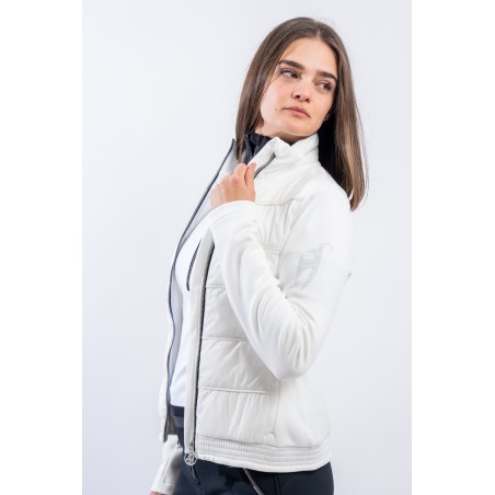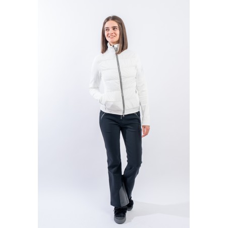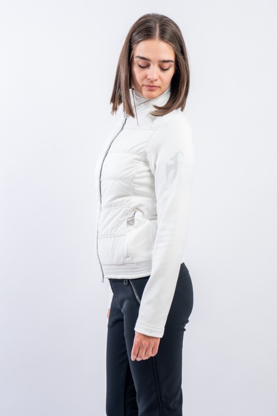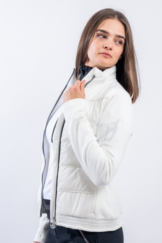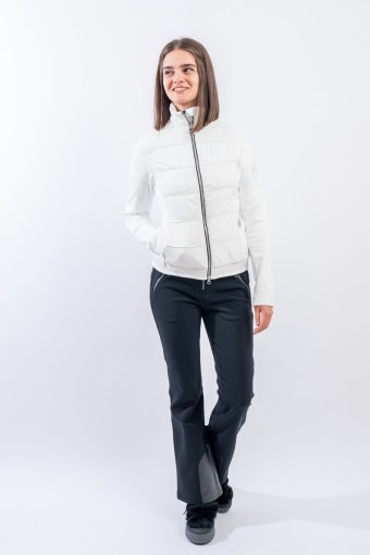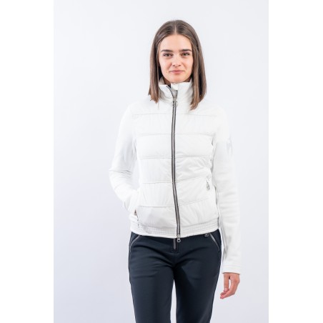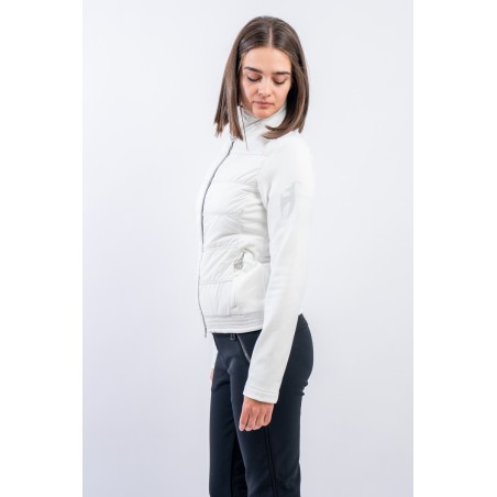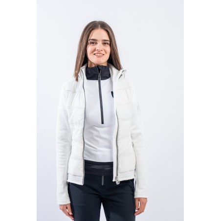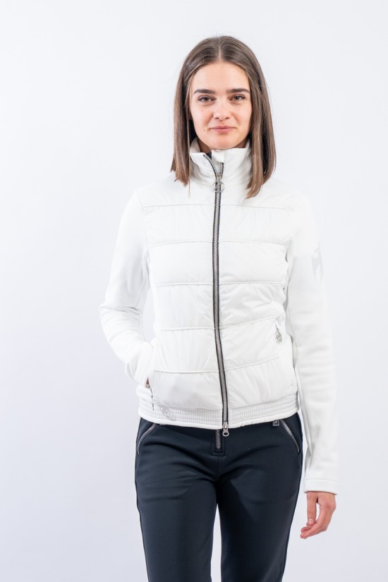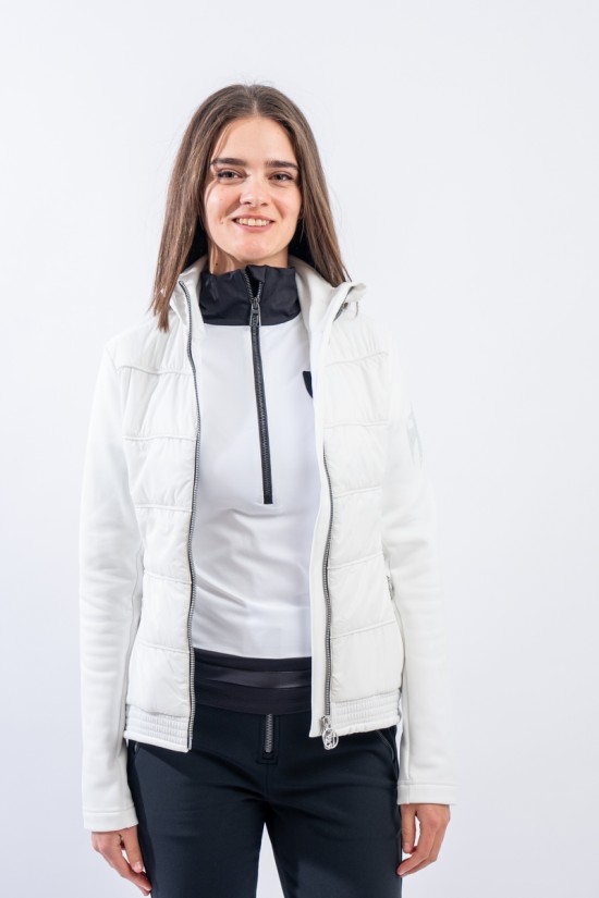 Theresa è il sotto giacca versatile dall'elegante sportività, risultato dell'incontro di due materiali che lo rendono funzionale senza rinunciare al look. Il pile tecnico si alterna al nylon Lightweight, raffinato e luminoso. Nella parte frontale è imbottito in morbida ovatta PrimaLoft®, isolante e leggera. La trapuntatura a boudine tradizionali rifinisce lo style. Confortevole e pratico, è traspirante e soprattutto caldo, ideale indossato da solo o come strato aggiuntivo sotto la giacca nelle giornate più fredde.