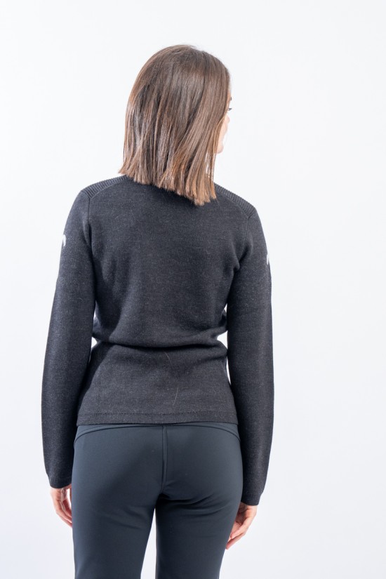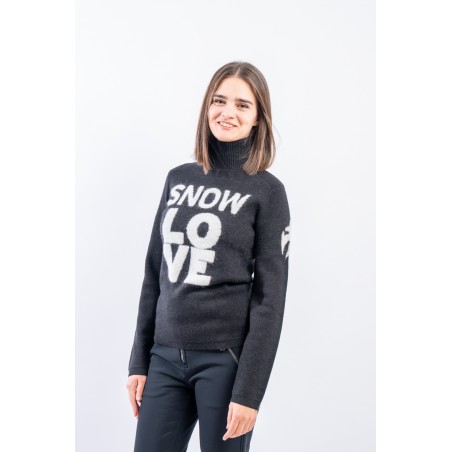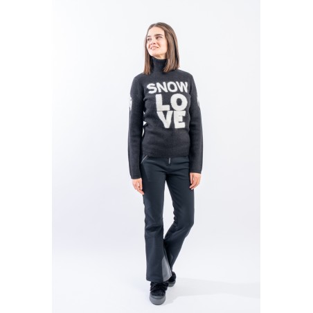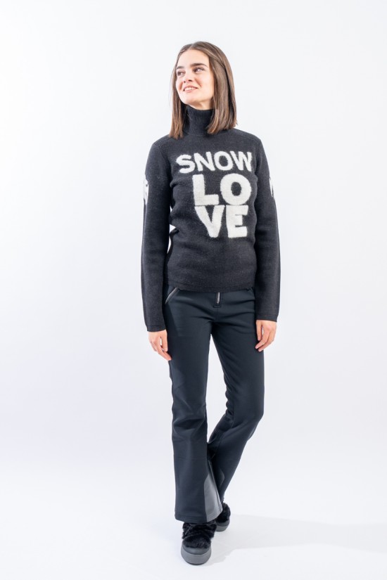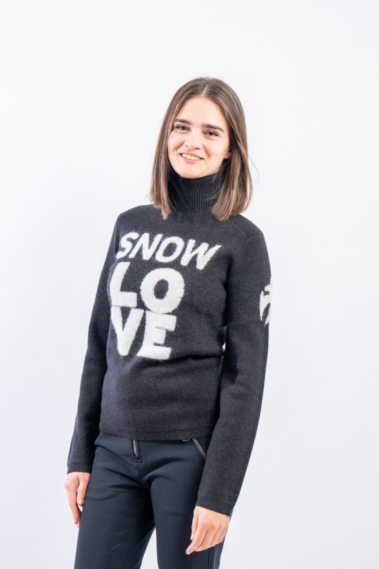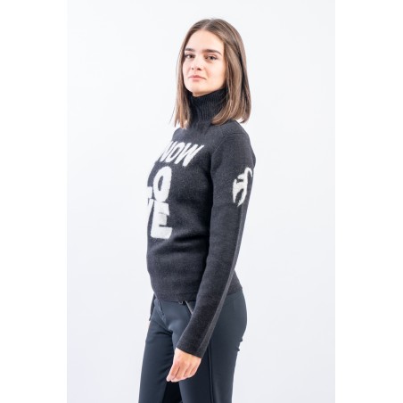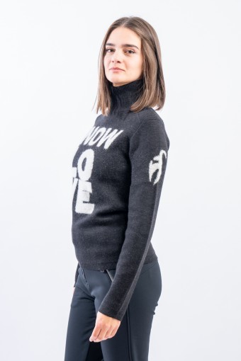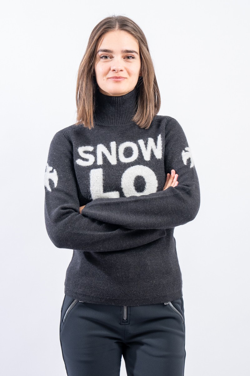 Dolcevita Vanessa, realizzato in 100% lana merino extrafine a doppia maglia. Caldo e confortevole indossato, è perfetto sotto la giacca sci o come complemento davanti al camino. Versatile e funzionale è arricchito dalla maxi scritta a contrasto sul davanti e dalla lavorazione a costine sulla parte superiore, al fondo e al bordo maniche.