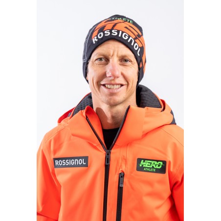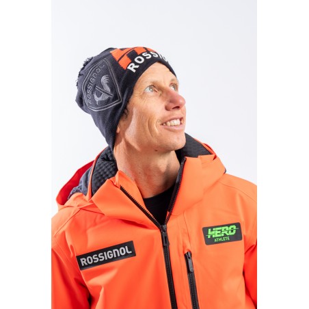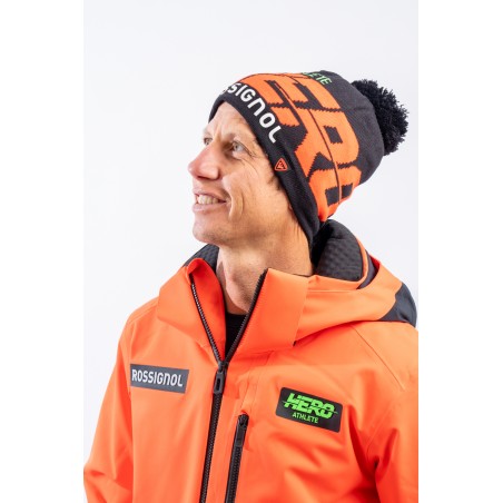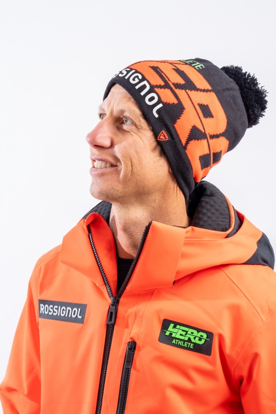 Berretto lavorato a costine elasticizzato ed avvolgente. Caldo e trapirante grazie alla fodera in pile. Design arricchito dal pom pon, dal maxi logo ricamato e dalla maxi scritta ricavata in contrasto di colore Hero Athlete.