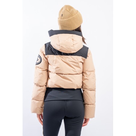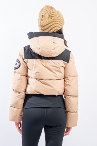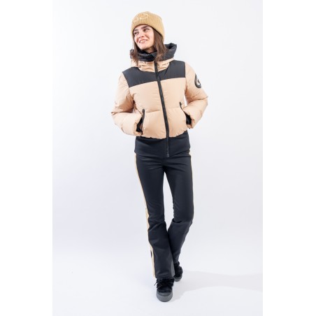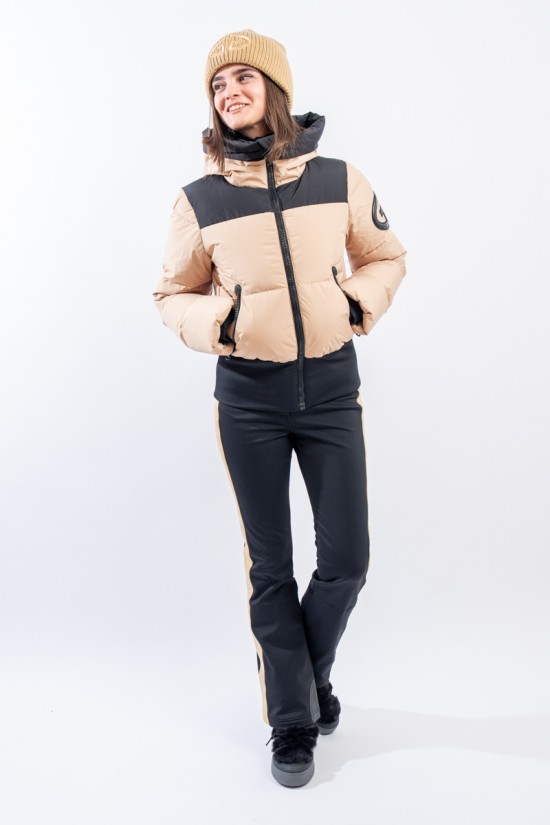 Village è la giacca sci effetto bomber realizzata da Goldbergh per la nuova stagione invernale. Il volume è valorizzato dagli ampi boudine e dall'ampia fascia elastica in vita, che completa lo stile del capo garantendo una protezione efficace all'aria grazie alla sua perfetta aderenza. Impermeabile e traspirante. Imbottita in morbida piuma è calda ed isolante. Dotata di cappuccio imbottito e collo alto, offre un'importante protezione aggiuntiva in condizioni sfavorevoli. Il design semplice è vivacizzato dai dettagli in contrasto di colore. Versatile e contemporanea è il capo giusto per affrontare al meglio l'inverno.