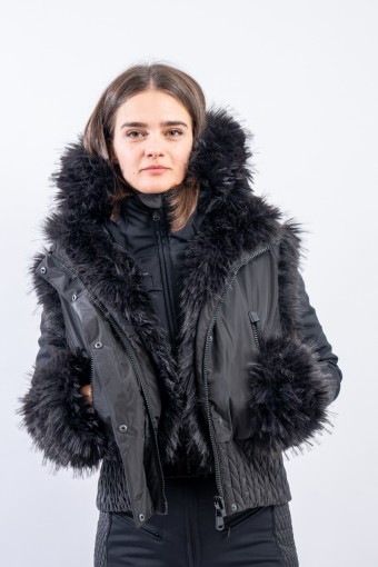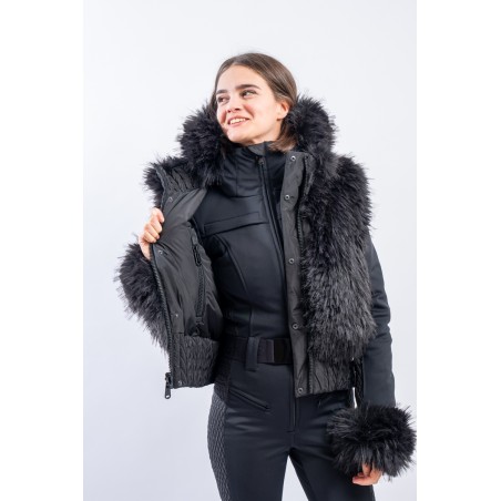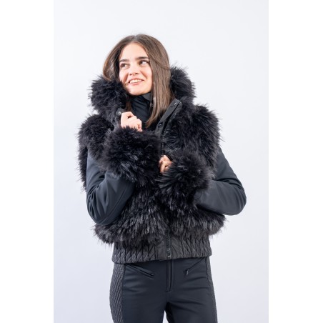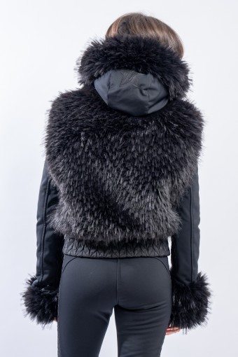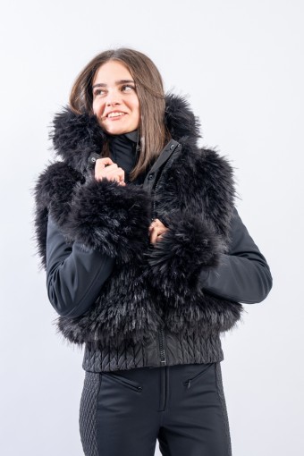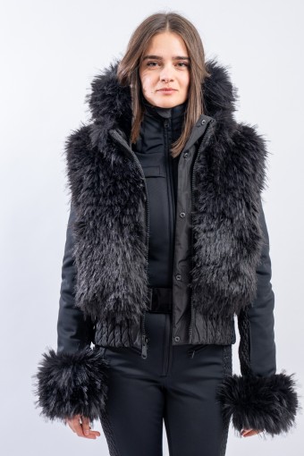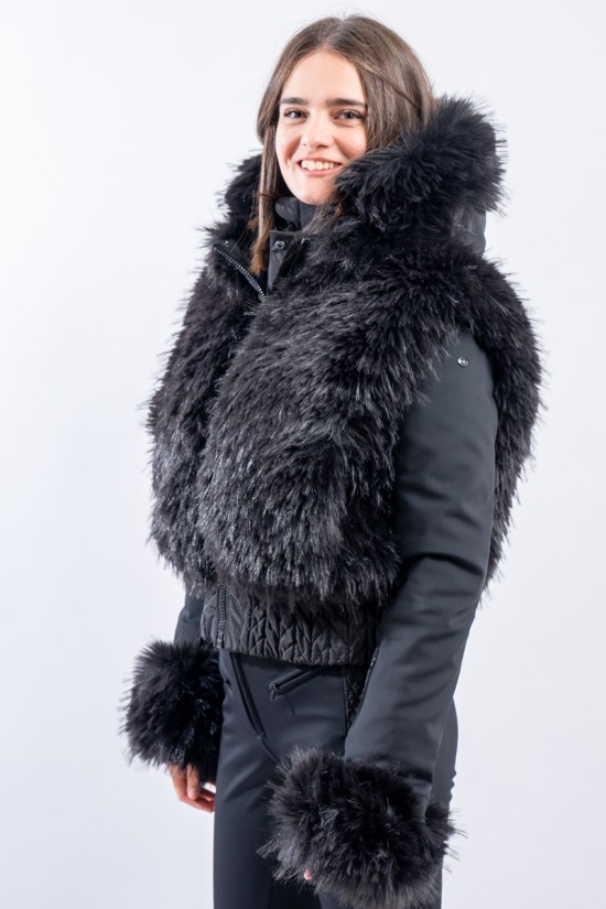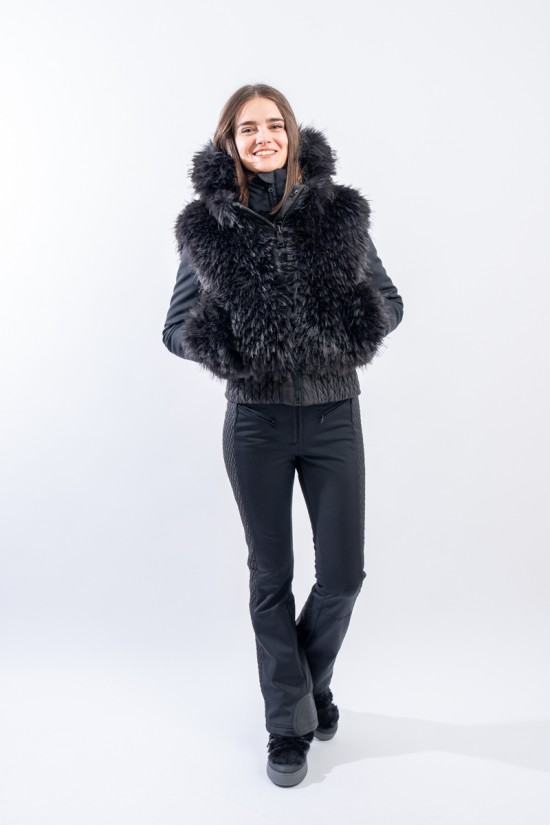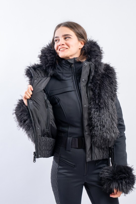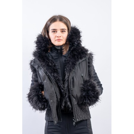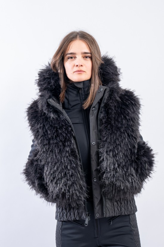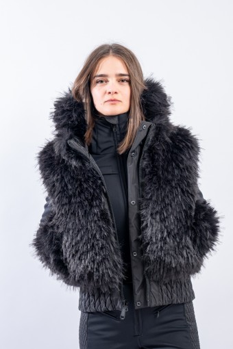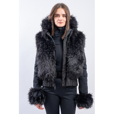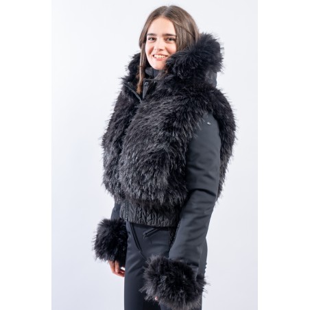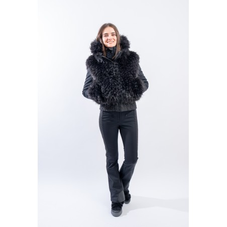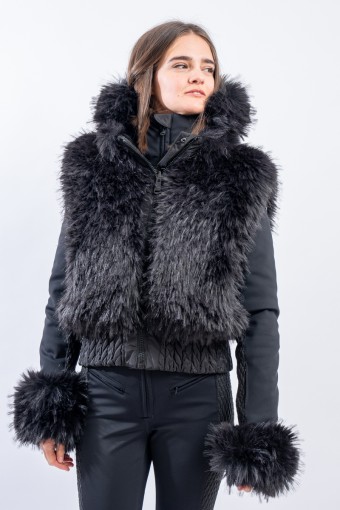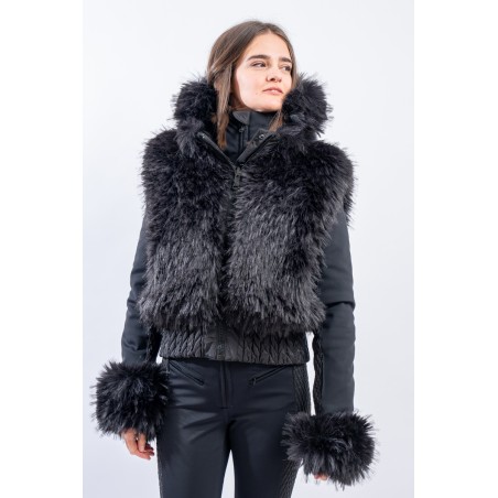 Dahlia è il bodywarmer reversibile realizzato in ecofur effetto pelliccia firmato Goldbergh. Il volume della pelliccia dona un tocco lussuoso al look. La fascia in nylon trapuntato sul fondo è elastica e caratterizzata da una vivace trapuntatura geometrica. Avvolgente e perfettamente adattabile al corpo, valorizza la vita offrendo una miglior protezione dall'aria. Il lato2 è in tessuto cangiante, completo di tasche laterali. Complemento perfetto per chi cerca un accessorio chic e per chi ricerca un look più sportivo senza dover rinunciare alla praticità del gilet. Per un après-ski di stile o per una sciata di classe, Dahlia è l'alleato perfetto.