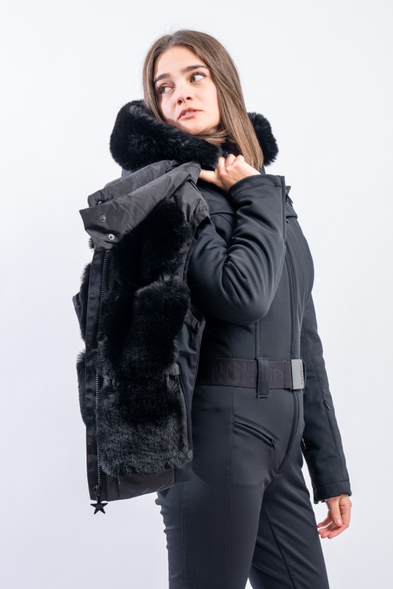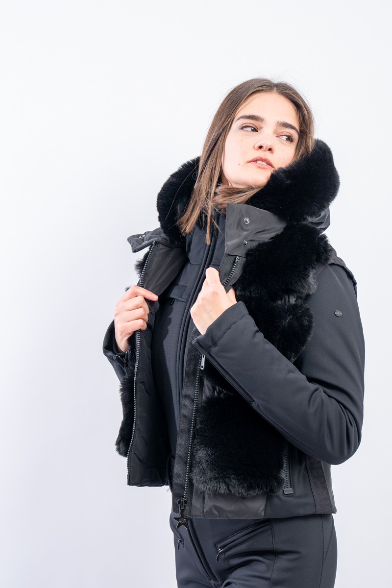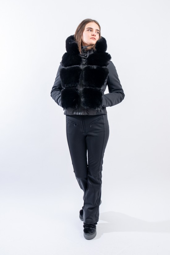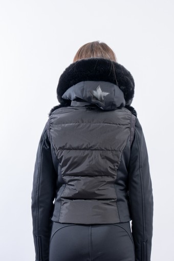 Gilet realizzato in mix fabric per un capo chic ma funzionale. Il nylon cangiante è abbinato al tessuto elasticizzato al fianco, che consente una piena libertà di movimento. Il giromaniche è completo di bordo elastico logato tono su tono, per garantire ulteriore comfort. Gli inserti in ecofur sul davanti caratterizzano il capo, donando piacevolezza al tatto e un tocco lussuoso al look. Imbottito in un mix di ovatta sintetica e piuma garantisce calore, isolazione e traspirazione. Per un après-ski di stile o per una sciata di classe, è l'alleato perfetto.