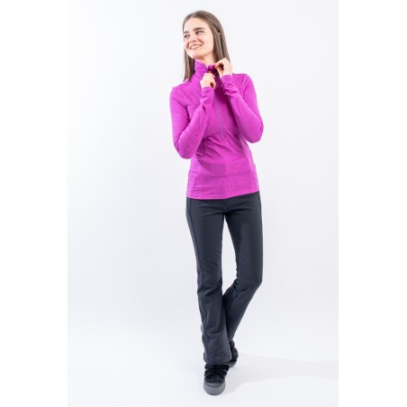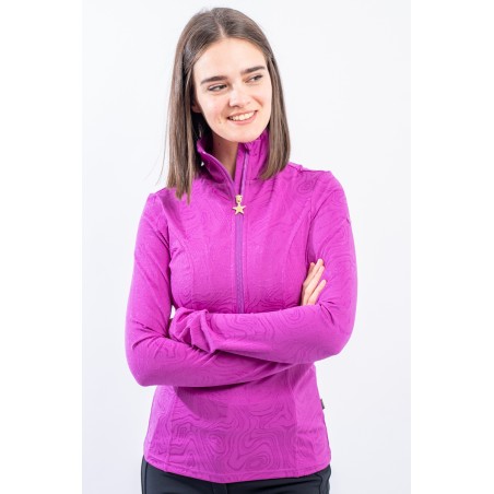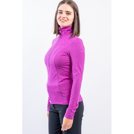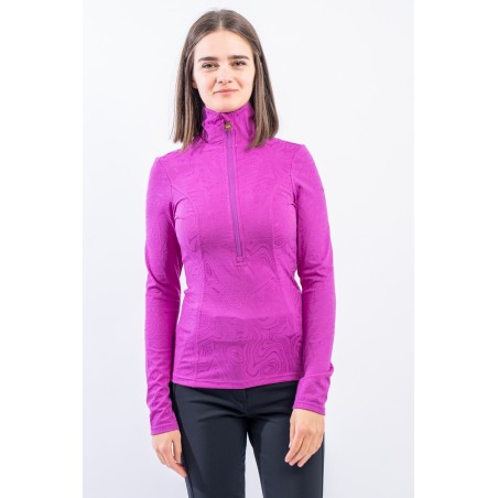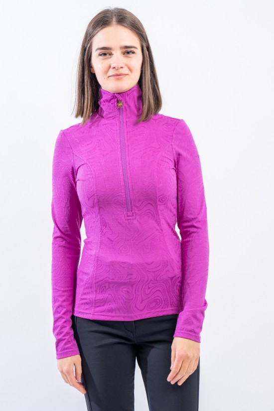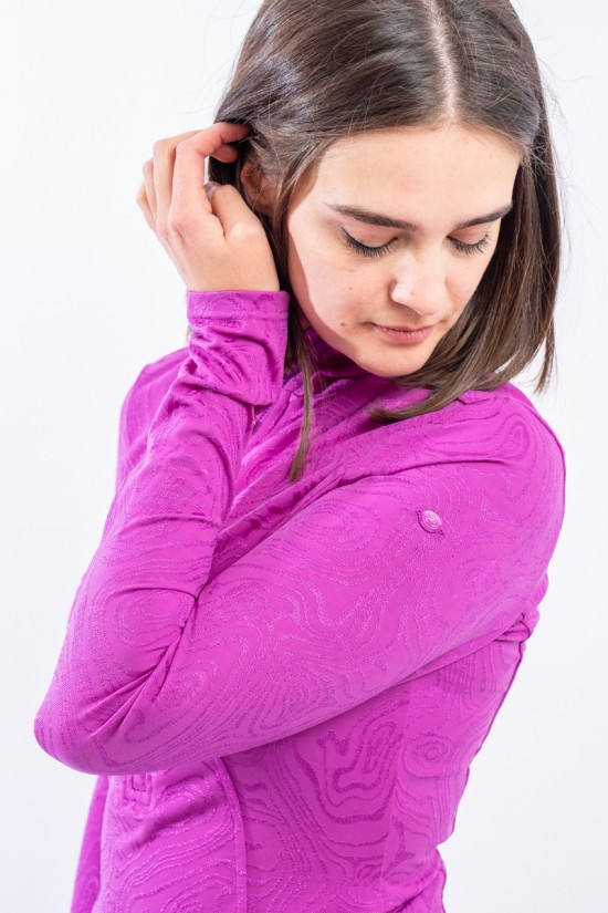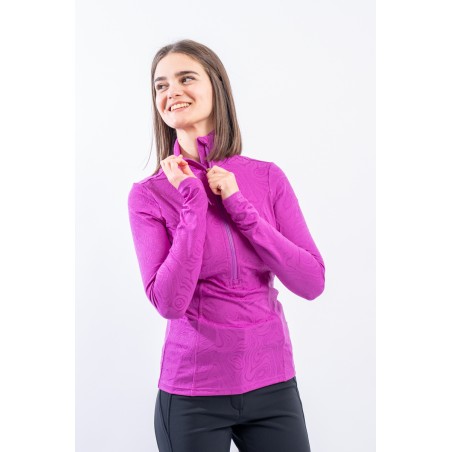 Sottotuta a mezza zip realizzato in tessuto elasticizzato microfelpato con tecnologia SILVADUR, antibatterico ed antiodore. Caratterizzato dal design astratto all over realizzato con un filato luminoso, per un capo funzionale e attento al look. Confortevole, caldo e traspirante è ideale sotto la giacca sci e per praticare ogni attività all'aria aperta.