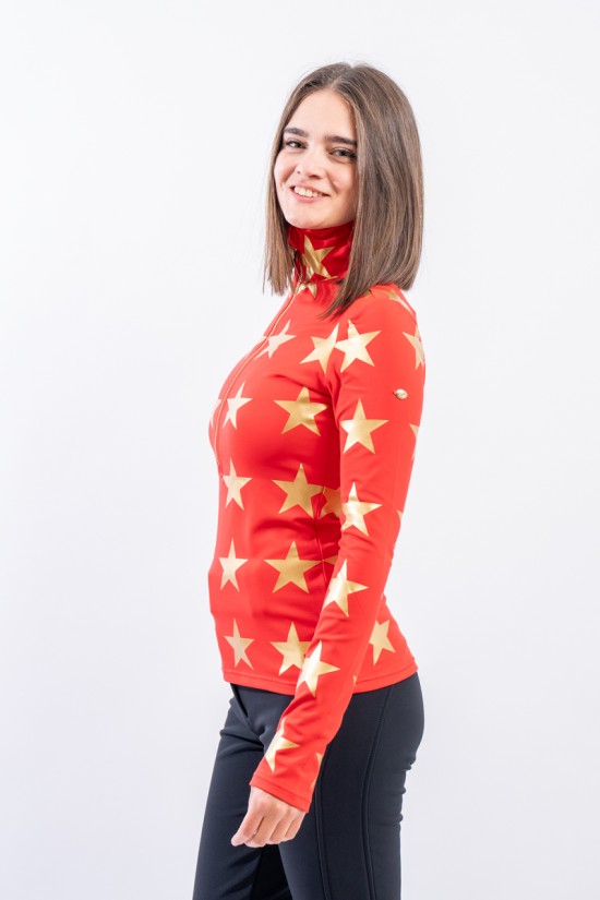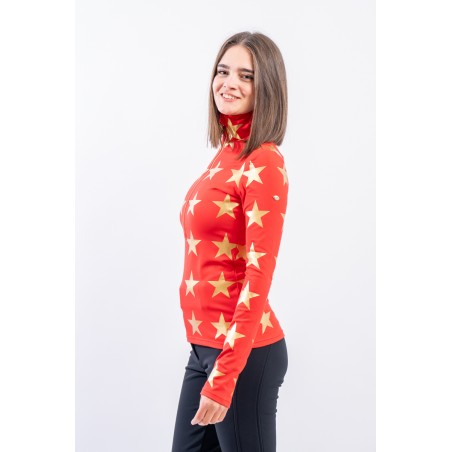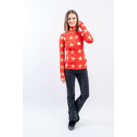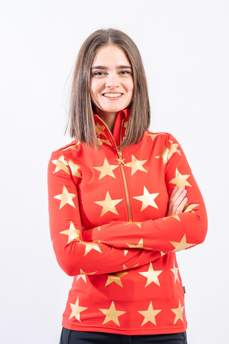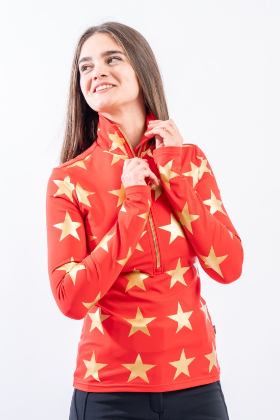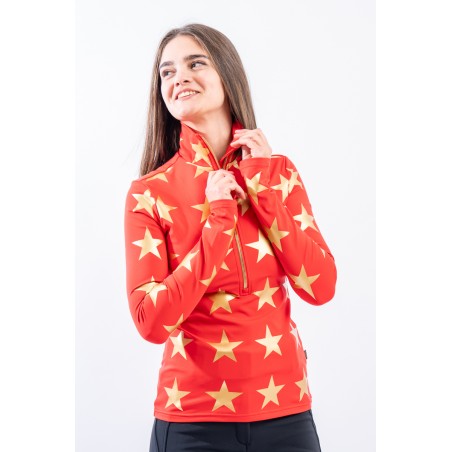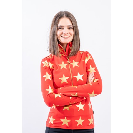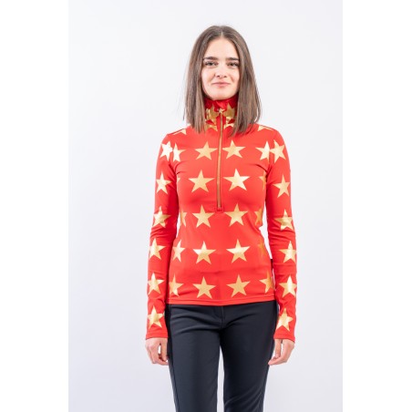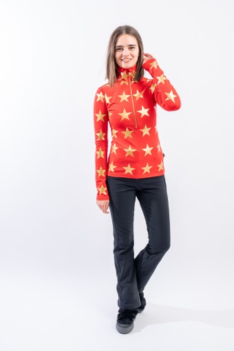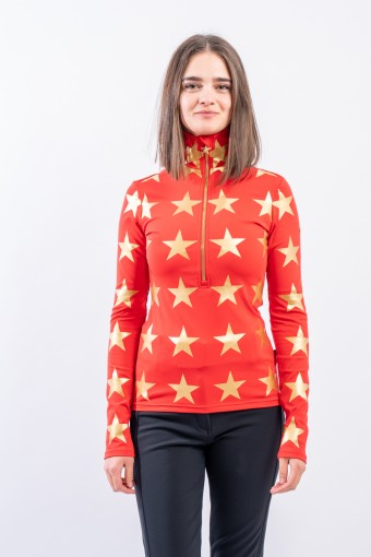 Sottotuta mezza zip realizzato in tessuto elasticizzato microfelpato con tecnologia SILVADUR, ad azione antibatterica e anti odore. Confortevole, caldo e traspirante. Caratterizzato dalla profonda zip e dalla stampa a contrasto con motivo a stella all over. Ideale sotto la giacca sci e per ogni attività all'aria aperta.