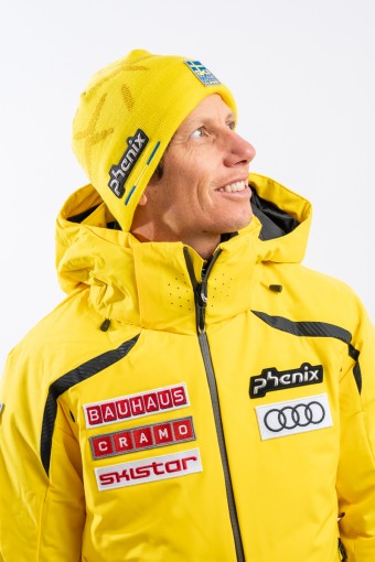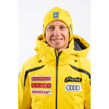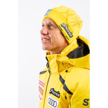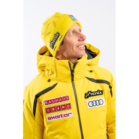 Berretto doppiato lavorato a costine. La fodera in pile ad effetto orsetto, è calda e a rapida asciugatura. Sul fondo il patch istituzionale gommato in 3D e il patch della squadra svedese. Arricchito dalla riproduzione del logo istituzionale all over. Elasticizzato è perfettamente adattabile.