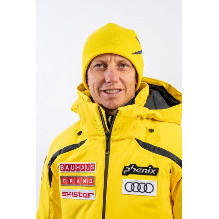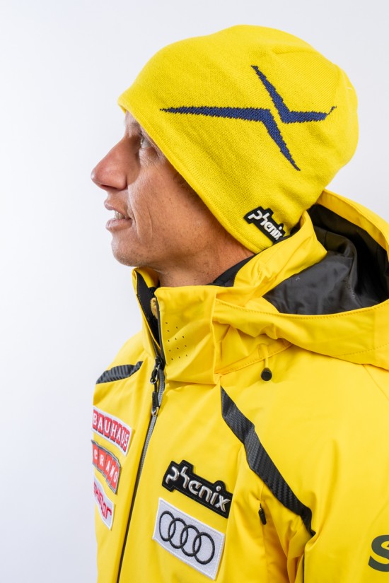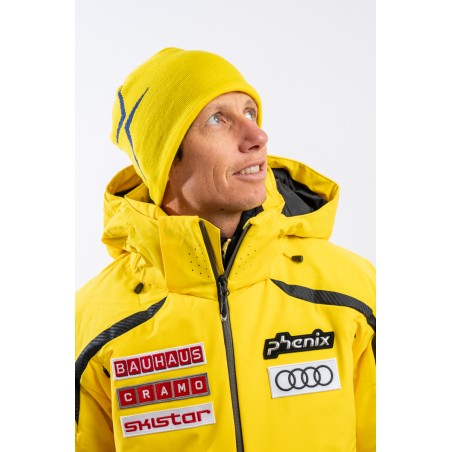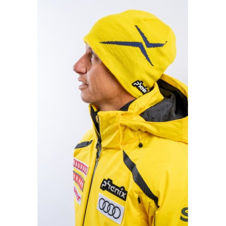 Berretto doppiato e lavorato a costine. L'interno in pile è caldo e a rapida asciugatura. Il patch istituzionale gommato in 3D è cucito al fondo ed il design è arricchito dalla realizzazione di un doppio logo Phenix a contrasto di colore. Elasticizzato è perfettamente adattabile.