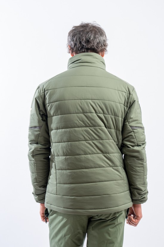 Giacca imbottita realizzata in resistente nylon ripstop. Collo in piedi e apertura full zip. Pratica e funzionale è dotata di due tasche laterali chiuse da zip. Il design lineare è arricchito dalla trapuntatura boudine e dalle zip in contrasto di colore. Calda e traspirante è ideale sotto un guscio nelle giornate più fredde o come sostituto alla giacca pensante nelle giornate più calde.