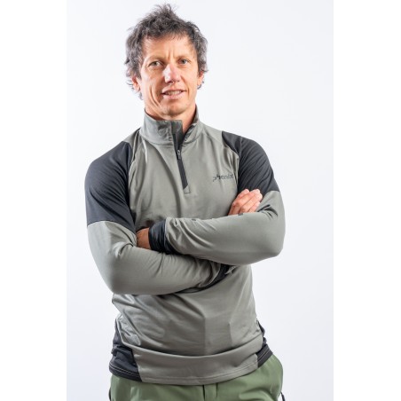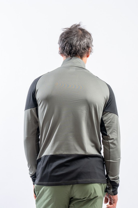 Sottotuta mezza zip realizzato in tessuto elasticizzato felpato. Caldo e traspirante. Confortevole è ideale per gli sport all'aria aperta e come mid layer sotto la giacca sci.
