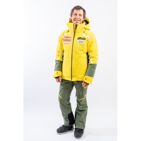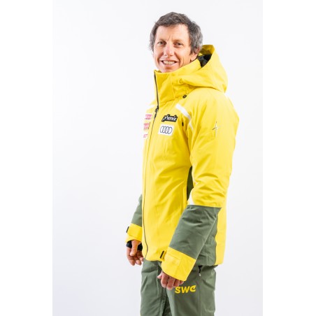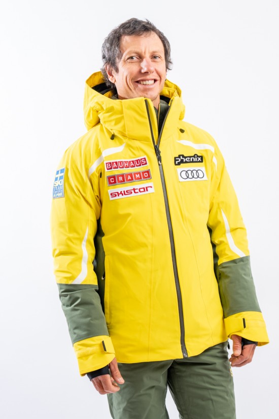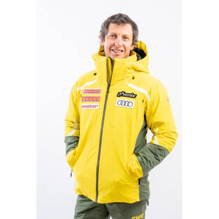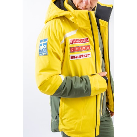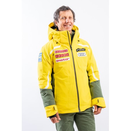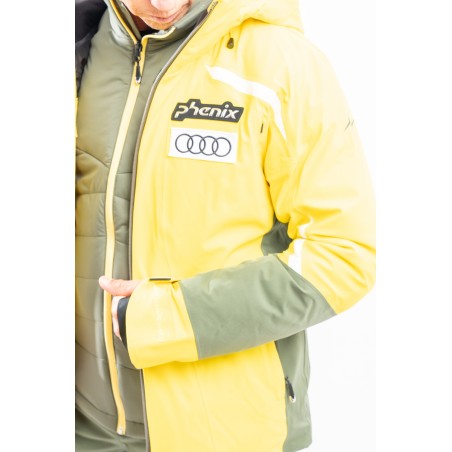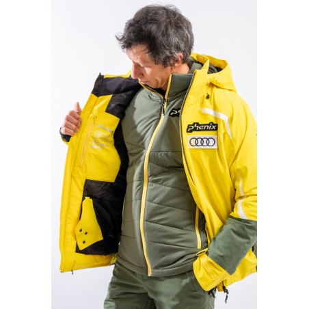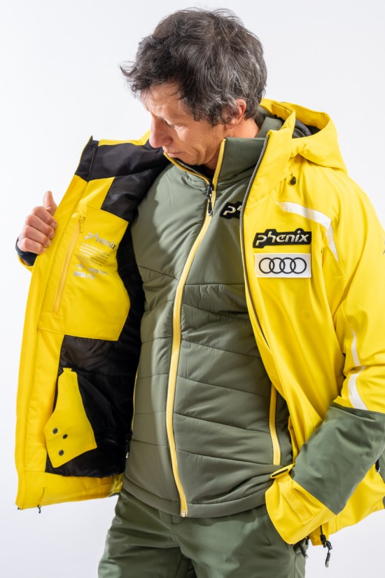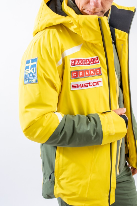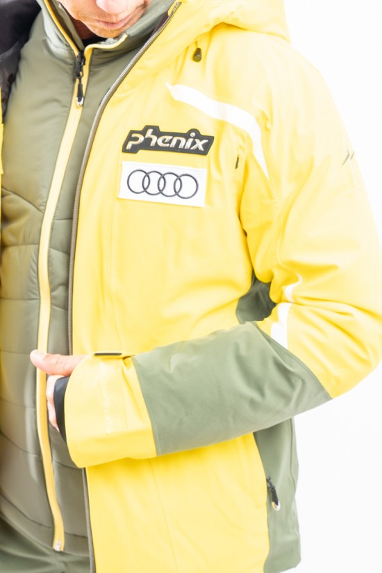 Tecnicità e comfort sono le parole chiave che descrivono la giacca realizzata da Phenix per la squadra svedese di sci alpino. Pensata per rispondere ad elevati standard di prestazione, è realizzata in tessuto tecnico elasticizzato in 4 direzioni, altamente impermeabile e traspirante. Imbottita in Phenix Hallow Thermo, cattura e rilascia il calore prodotto dal corpo, assicurando isolazione e calore ottimali. Design semplice arricchito da ogni optional anti neve. Le zip di ventilazione supplementare, e il cappuccio staccabile, consentono di regolare il micro clima interno e di adattare la giacca a seconda della necessità. Il modello riporta i patch degli sponsor ufficiali sul petto per un look sportivo professionistico.