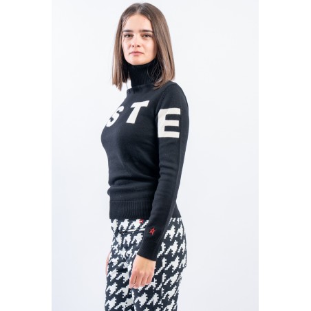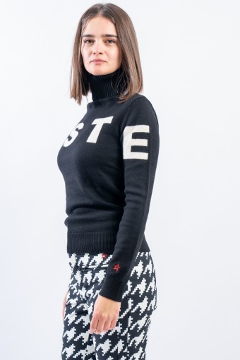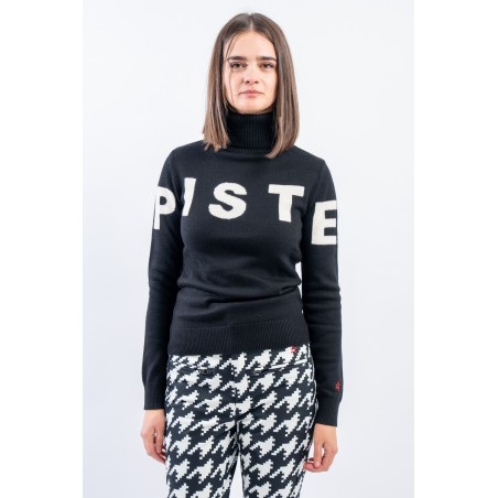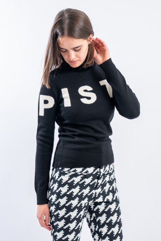 Dolcevita realizzato in lana merinos 100%. Morbida, calda e piacevole indosso. Il collo alto avvolgente, protegge e dona una maggior sensazione di calore. La vestibilità regular la rende confortevole. Il design semplice è arricchito dalla scritta PISTE a contrasto sulla parte alta.