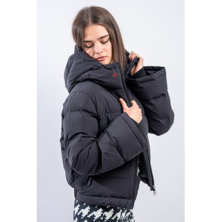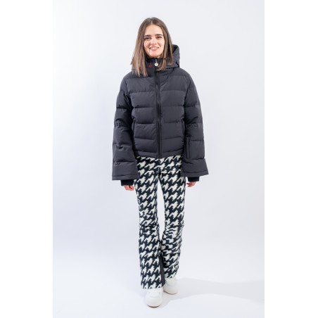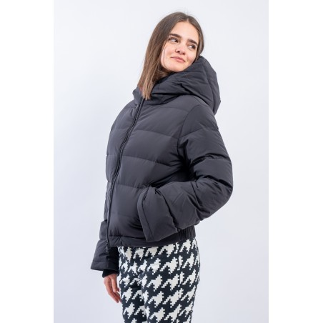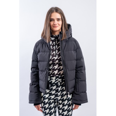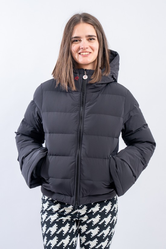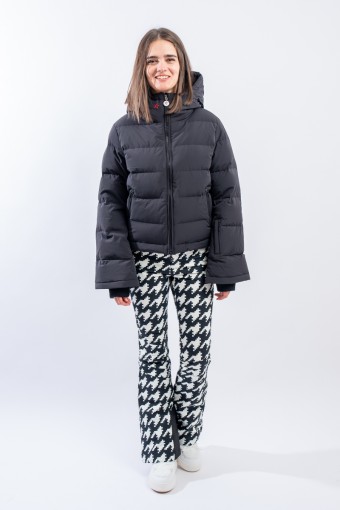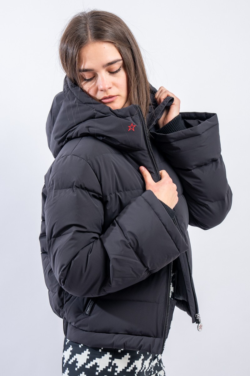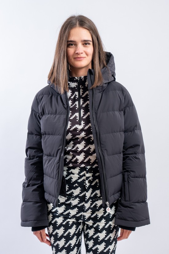 Look dinamico e design essenziale arricchito dal tessuto esterno, luminoso metallizzato o stampato, in qualsiasi versione la si scelga, Polar Flare porterà una sprezzata di novità nel guardaroba invernale. Il cappuccio avvolgente e la chiusura alta assecondano uno stile morbido, garantendo un'efficace protezione in condizioni sfavorevoli. Le maniche asimmetrice, più ampie sul finale danno una forma nuova e contemporanea al look. Imbottita in morbida piuma d'oca, completa di polsino antineve e di elastico al fondo, è calda e garantisce una perfetta isolazione. Versatile e divertente è il capo perfetto sulle piste da sci e non solo.