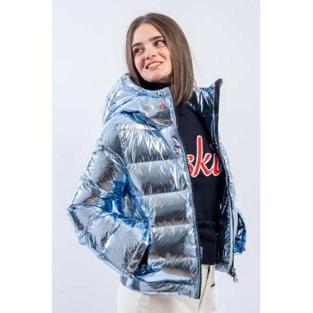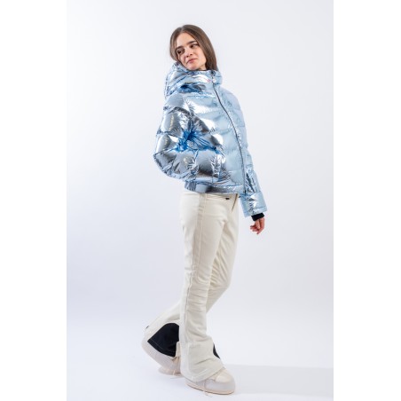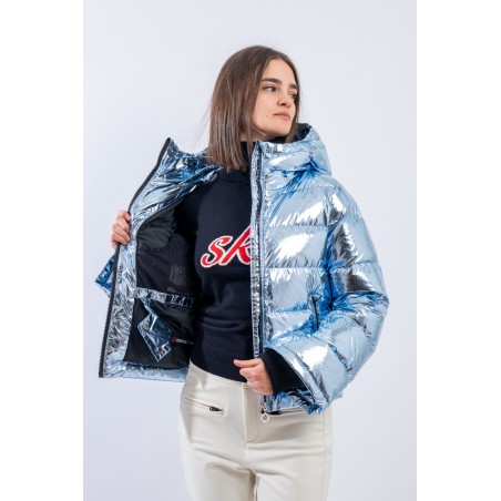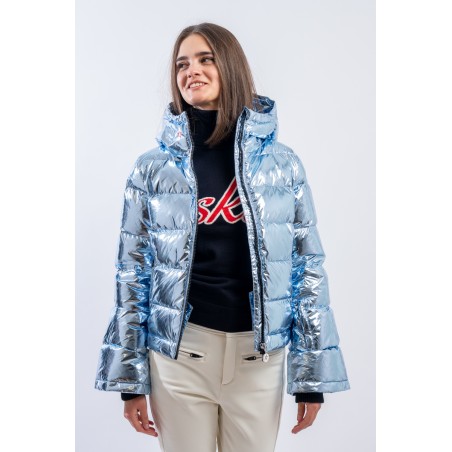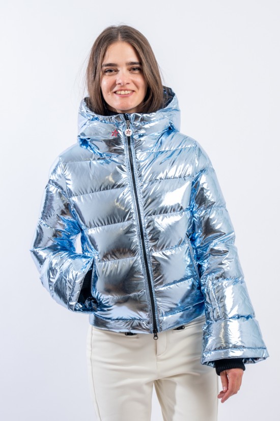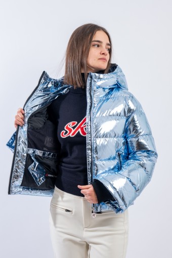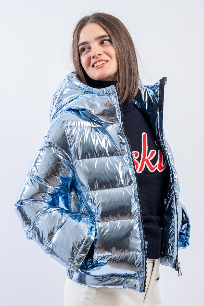 Look dinamico e design essenziale arricchito dal tessuto esterno, luminoso metallizzato o stampato, in qualsiasi versione la si scelga, Polar Flare porterà una sprezzata di novità nel guardaroba invernale. Il cappuccio avvolgente e la chiusura alta assecondano uno stile morbido, garantendo un'efficace protezione in condizioni sfavorevoli. Le maniche asimmetrice, più ampie sul finale danno una forma nuova e contemporanea al look. Imbottita in morbida piuma d'oca, completa di polsino antineve e di elastico al fondo, è calda e garantisce una perfetta isolazione. Versatile e divertente è il capo perfetto sulle piste da sci e non solo.