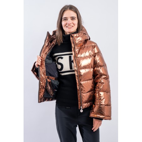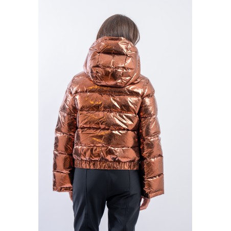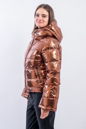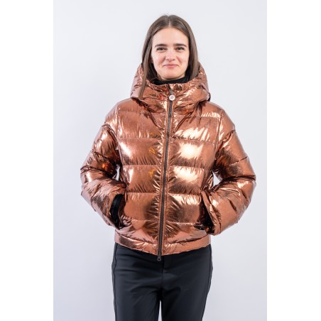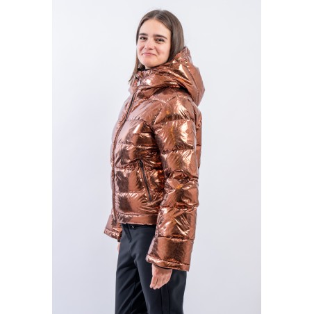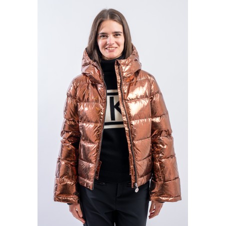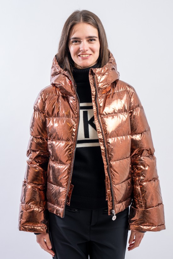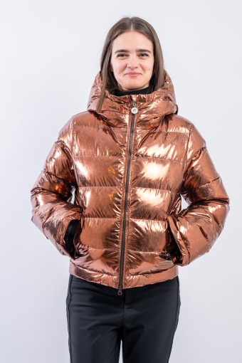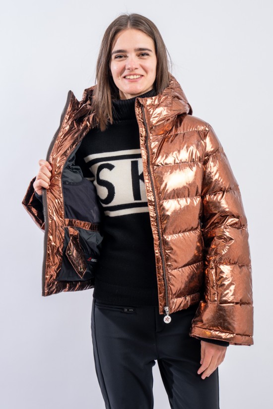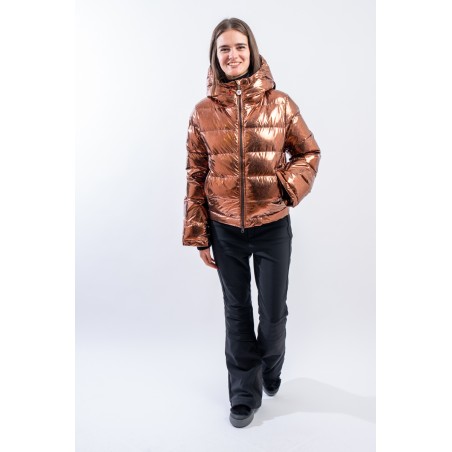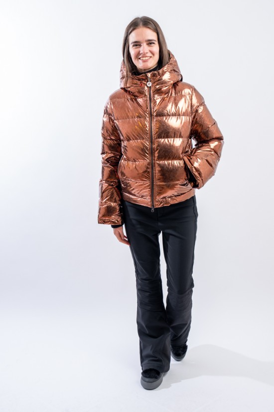 Look dinamico e design essenziale arricchito dal tessuto esterno, luminoso metallizzato o stampato, in qualsiasi versione la si scelga, Polar Flare porterà una sprezzata di novità nel guardaroba invernale. Il cappuccio avvolgente e la chiusura alta assecondano uno stile morbido, garantendo un'efficace protezione in condizioni sfavorevoli. Le maniche asimmetrice, più ampie sul finale danno una forma nuova e contemporanea al look. Imbottita in morbida piuma d'oca, completa di polsino antineve e di elastico al fondo, è calda e garantisce una perfetta isolazione. Versatile e divertente è il capo perfetto sulle piste da sci e non solo.