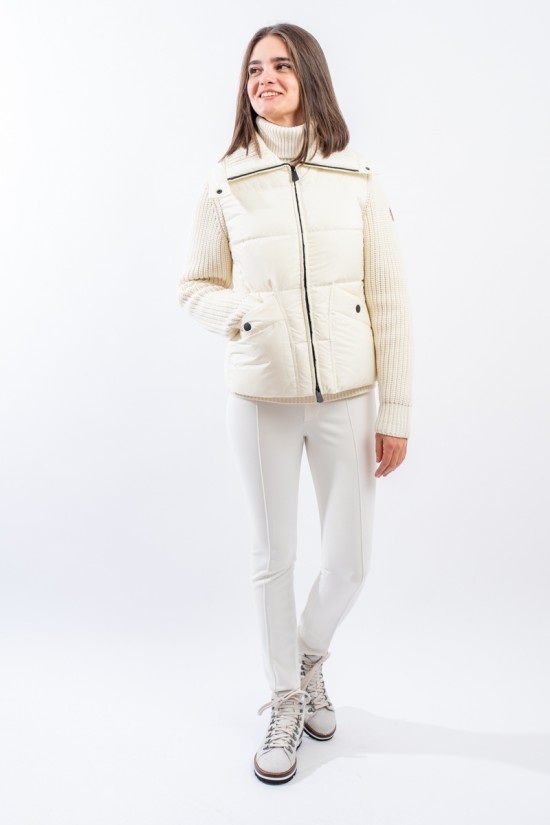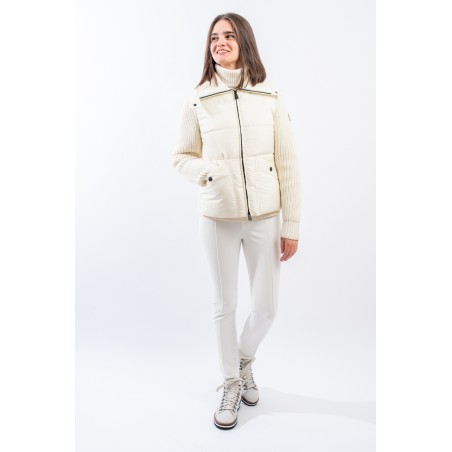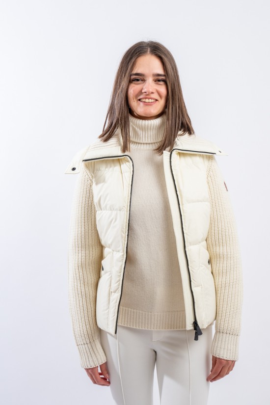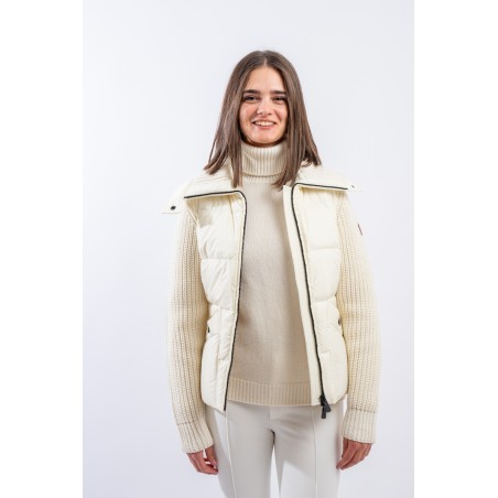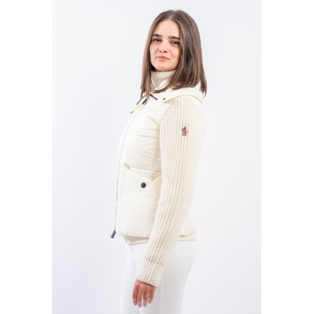 Disegnato e realizzato pensando al tempo libero invernale, il cardigan di Moncler è l'accessorio giusto per dare un tocco di calore in più all'outfit sulla neve. Caldo è realizzato in lana vergine ed imbottito nella parte frontale in pregiato piumino 90/10. Il filato su maniche, collo e dietro, è elegantemente lavorato a maglia e sul davanti il nylon rainwear contiene l'imbottitura assicurando una maggior protezione ad acqua e vento. Versatile è ideale come strato aggiuntivo per una passeggiata o per un'avventura sulla neve o come capospalla nelle giornate più calde.