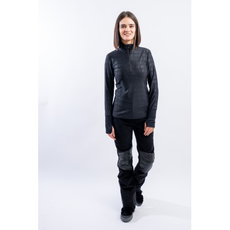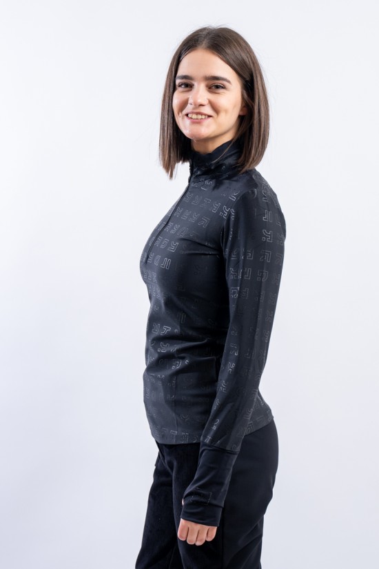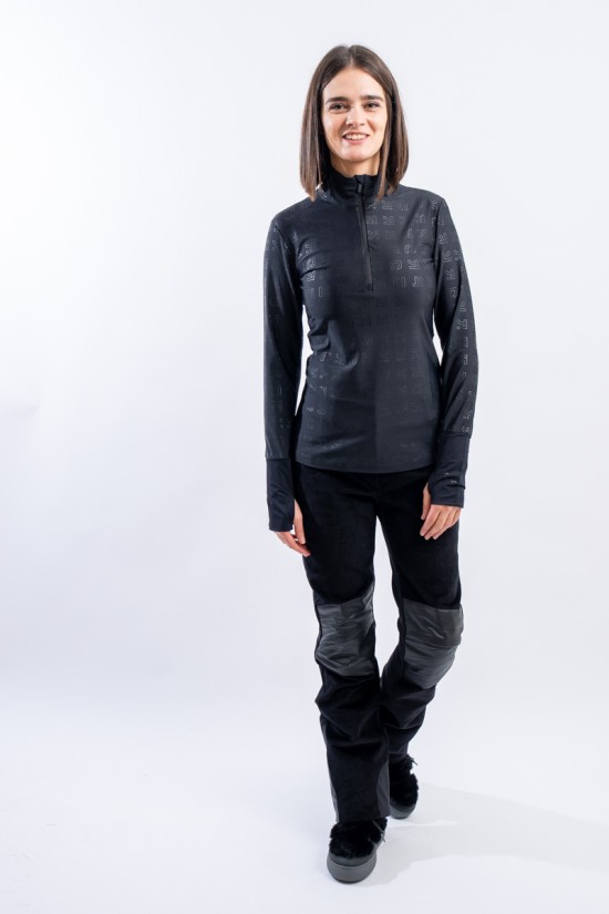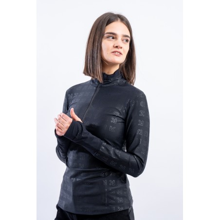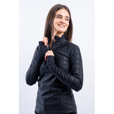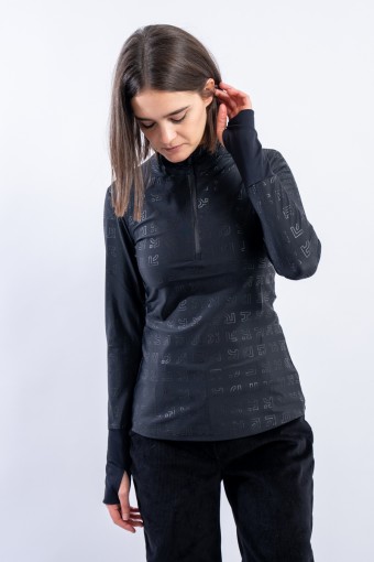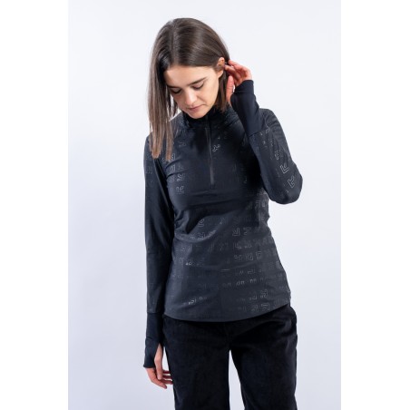 Sottotuta mezza zip realizzato in tessuto elasticizzato ottenuto dal filato rigenerato Econyl. Traspirante e caldo internamente è foderato in micro pile. Linea semplice ed essenziale arricchita dall'iconica stampa One More e dal logo istituzionale realizzato in cristalli Swarovski. Ideale per praticare sport all'aperto o come first layer.