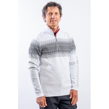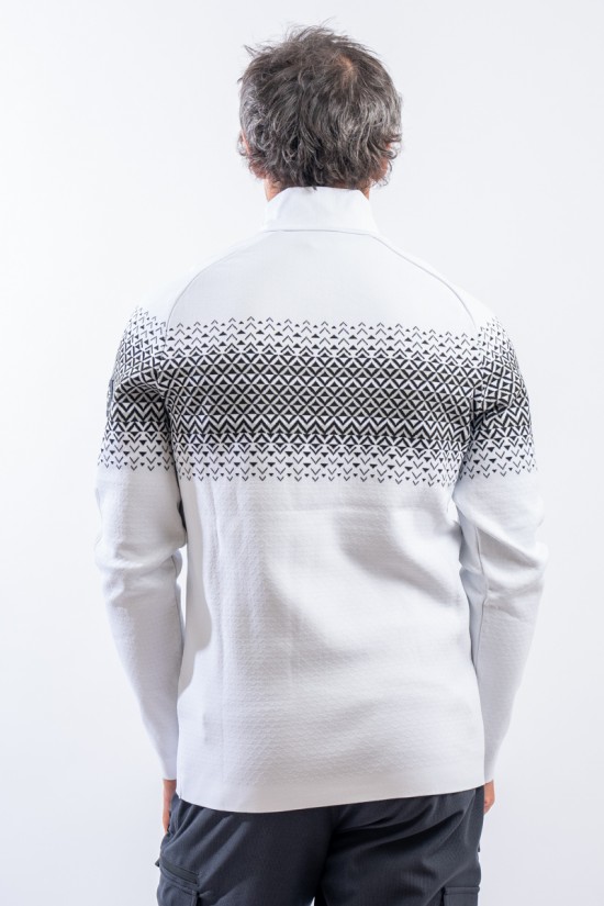 Sottotuta mezza zip in tessuto DH-Tech 400 high performance, per un capo altamente isolante e traspirante. Prodotto realizzato con un filato a base di poliuretano estruso caratterizzato dal un filo cavo internamente. Ad asciugatura rapida è anti-odore e antibatterico. Questa inedita soluzione rigorosamente Made in Italy rende il prodotto compatto ed elastico per un comfort ed una vestibilità senza eguali.