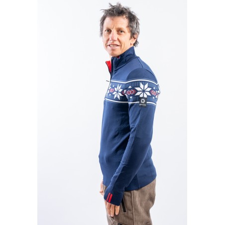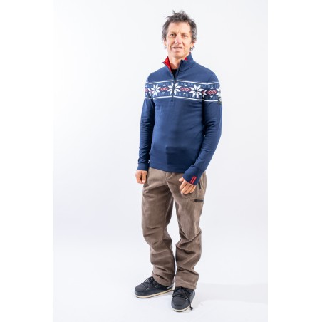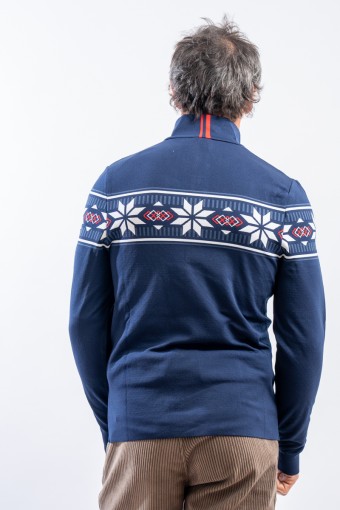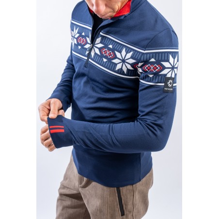 Sottotuta mezza zip in tessuto DH-Tech 400 high performance, per un capo altamente isolante e traspirante. Prodotto realizzato con un filato a base di poliuretano estruso caratterizzato dal un filo cavo internamente. Ad asciugatura rapida è anti-odore e antibatterico. Questa inedita soluzione rigorosamente Made in Italy rende il prodotto compatto ed elastico per un comfort ed una vestibilità senza eguali.