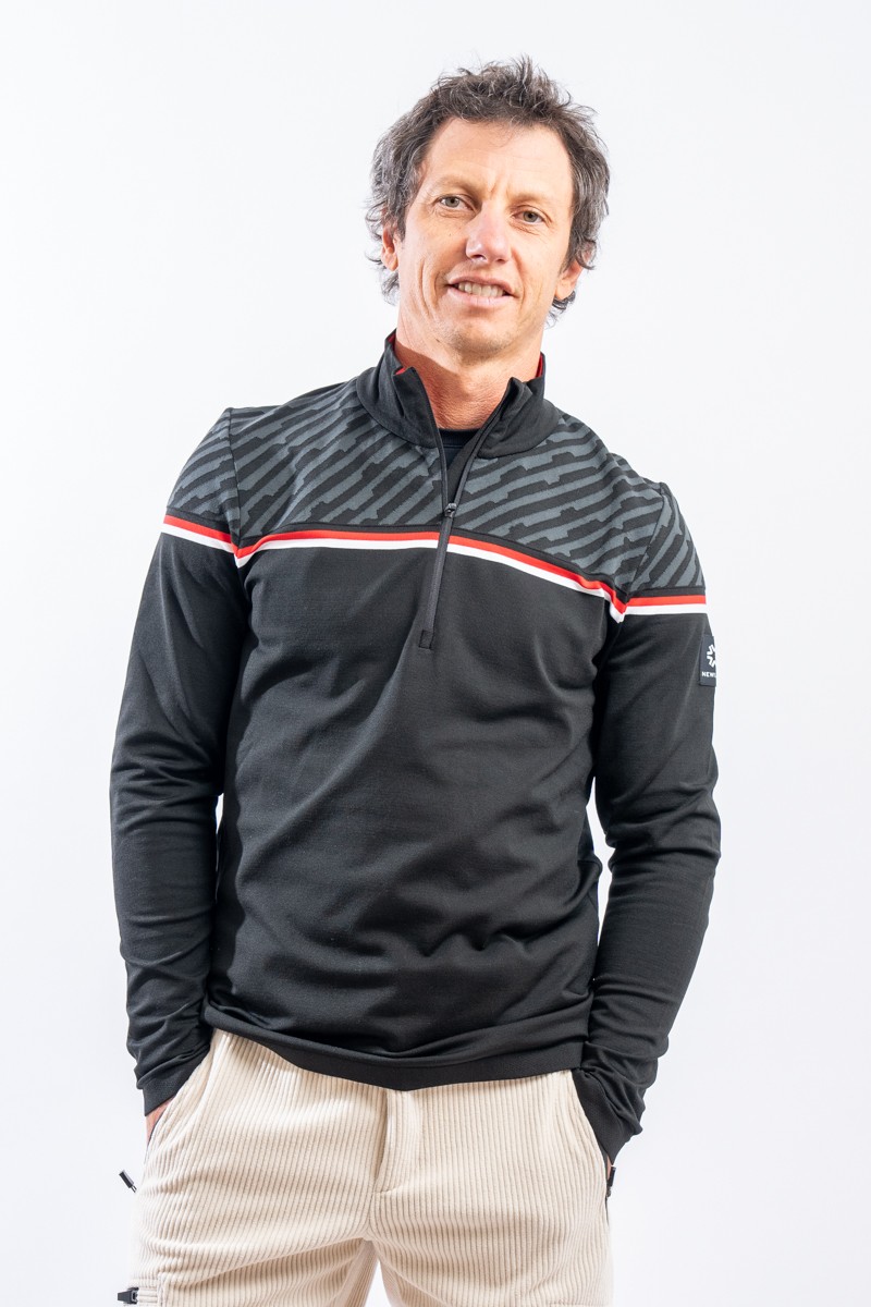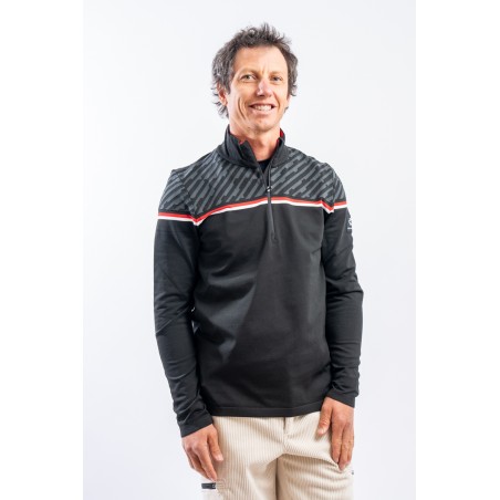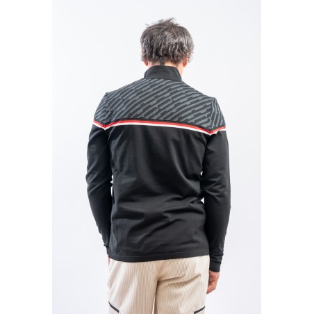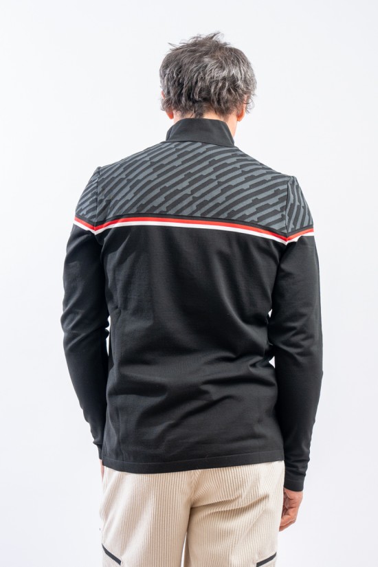 Sottotuta mezza zip in tessuto DH-Tech 400 high performance, per un capo altamente isolante e traspirante. Prodotto realizzato con un filato a base di poliuretano estruso caratterizzato dal un filo cavo internamente. Ad asciugatura rapida è anti-odore e antibatterico. Questa inedita soluzione rigorosamente Made in Italy rende il prodotto compatto ed elastico per un comfort ed una vestibilità senza eguali.