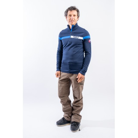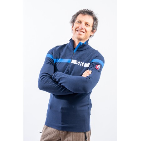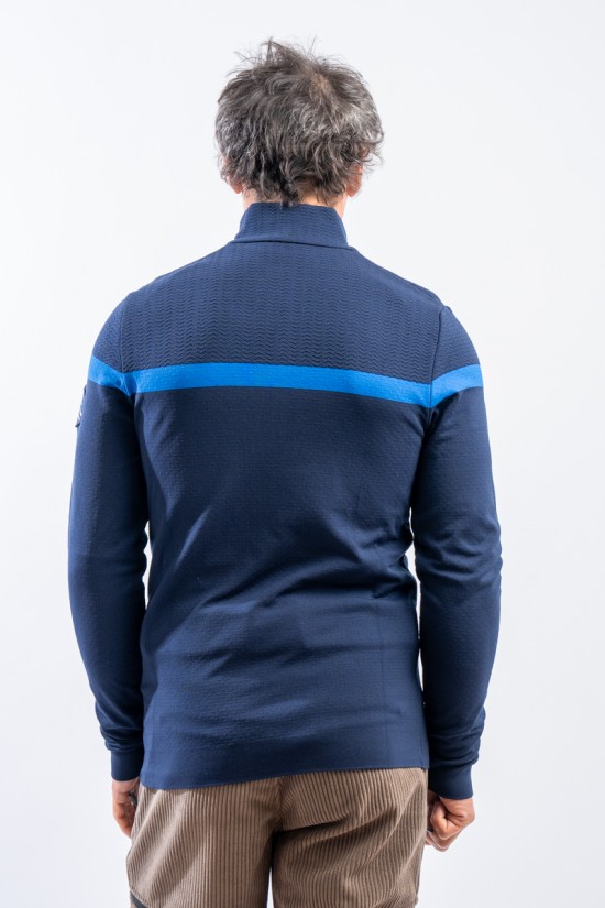 Sottotuta mezza zip in tessuto DH-Tech 400 high performance, per un capo altamente isolante e traspirante. Prodotto realizzato con un filato a base di poliuretano estruso caratterizzato dal un filo cavo internamente. Ad asciugatura rapida è anti-odore e antibatterico. Questa inedita soluzione rigorosamente Made in Italy rende il prodotto compatto ed elastico per un comfort ed una vestibilità senza eguali.