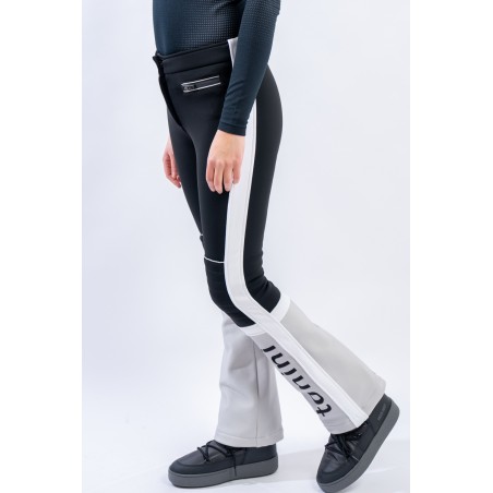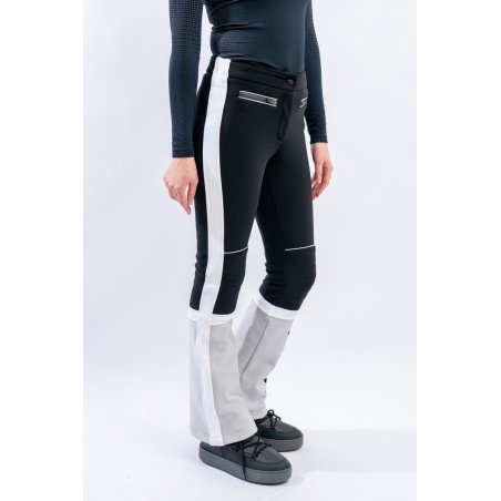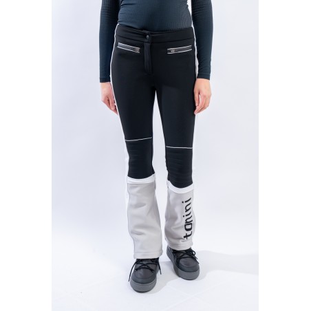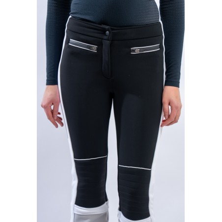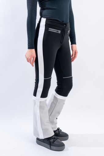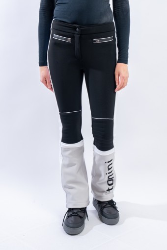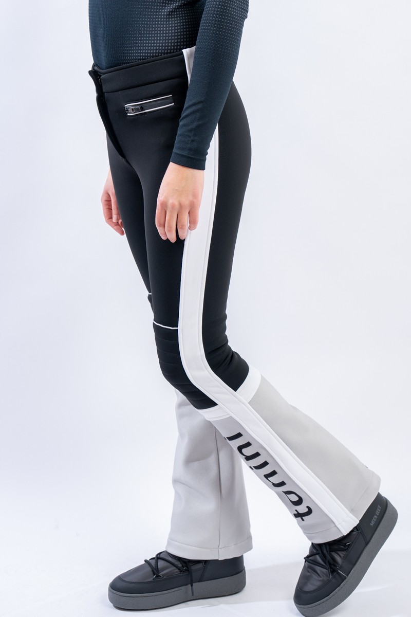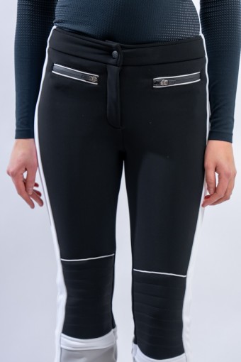 Pantalone realizzato in tessuto elasticizzato Schoeller® abbinato a membrana Tek Series. Particolarmente resistente a freddo, acqua e vento, ed altamente traspirante. Il tessuto avvolge la figura, valorizzandola, adattando perfettamente il pantalone. Contraddistinto da uno stile vintage ispirato alle gare, è leggermente imbottito sulle ginocchia e arricchito dal maxi lettering TONINI ricamato a contrasto sul fondo. Design che guarda al passato e tecnologie moderne per MArvi Panski, pantalone dal look sportivo ed accattivante, perfetto per affrontare le piste con uno ricercato stile retrò.